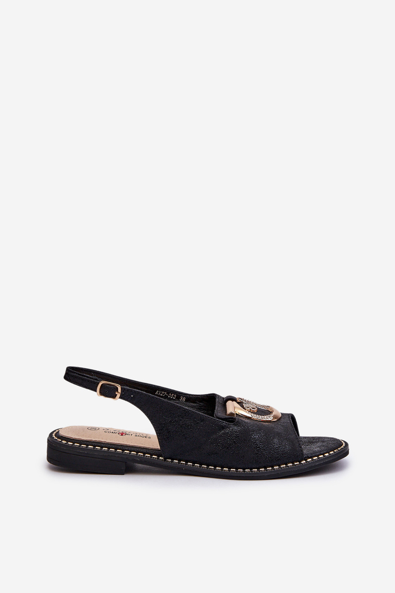Elegantné Dámske Sandále S Zlatou Ozdobou Na Plochom Podpätku Čierne S.Barski KV27-053