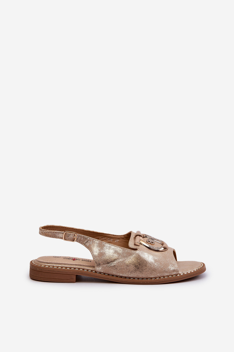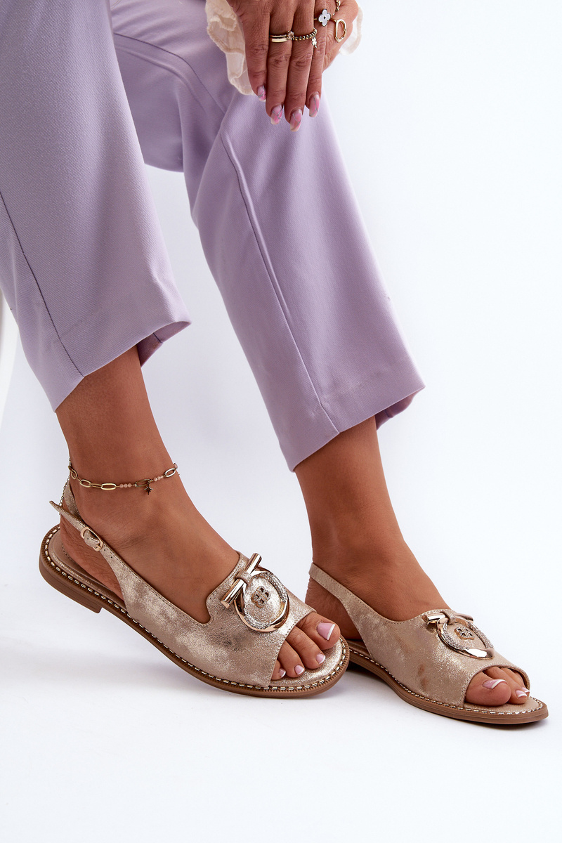 Elegantné dámske sandále so zlatou ozdobou na plochej podrážke Zlaté S.Barski KV27-053