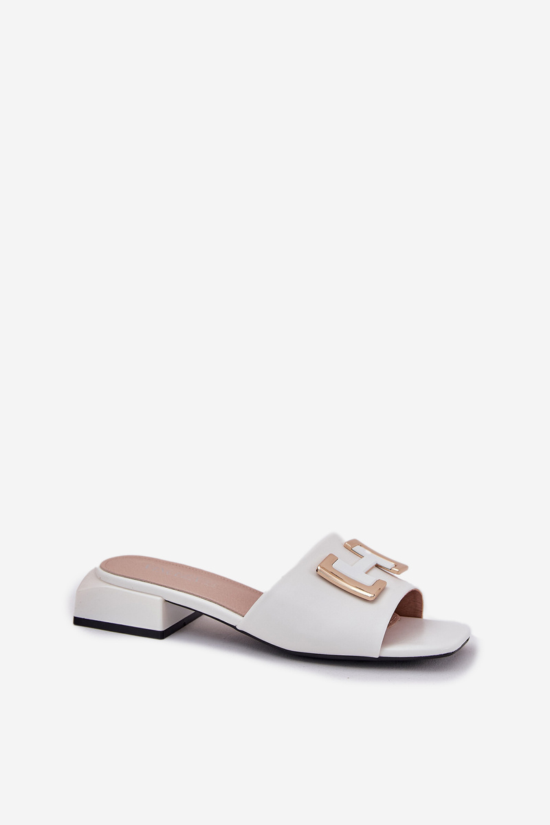 Elegantné Dámske Šľapky Na Bloku So Zlatým Detailom Vinceza 62229 Biele