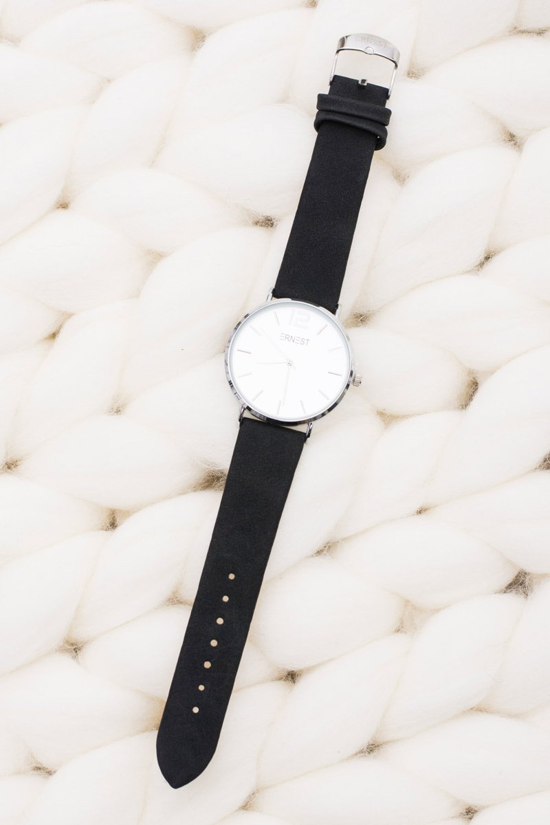 Elegantné kožené čierne dámske hodinky Ernest