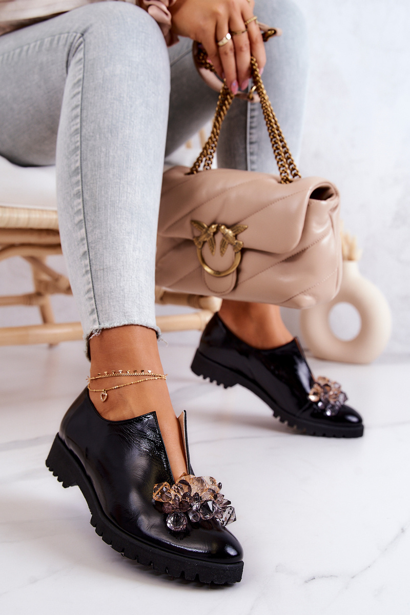 Elegantné kožené topánky s ornamentom čiernou cindy