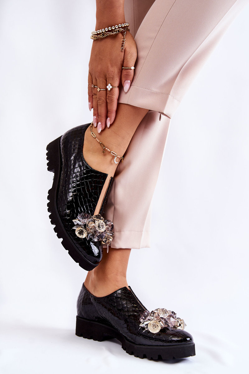 Elegantné lakované topánky s dekoráciou krokodíla čierna cindy