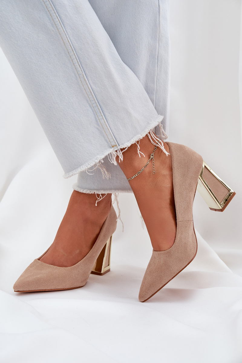 Elegantné Lodičky Na Opätku Špičaté Nosky Tmavo béžové Falseki