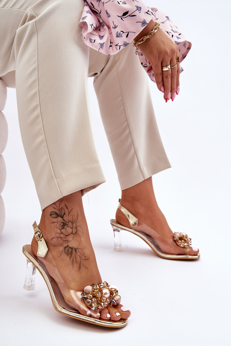 Elegantné priehľadné sandále s dekoráciou Zlatá Lilah