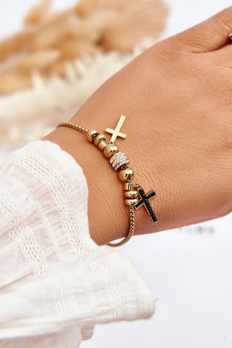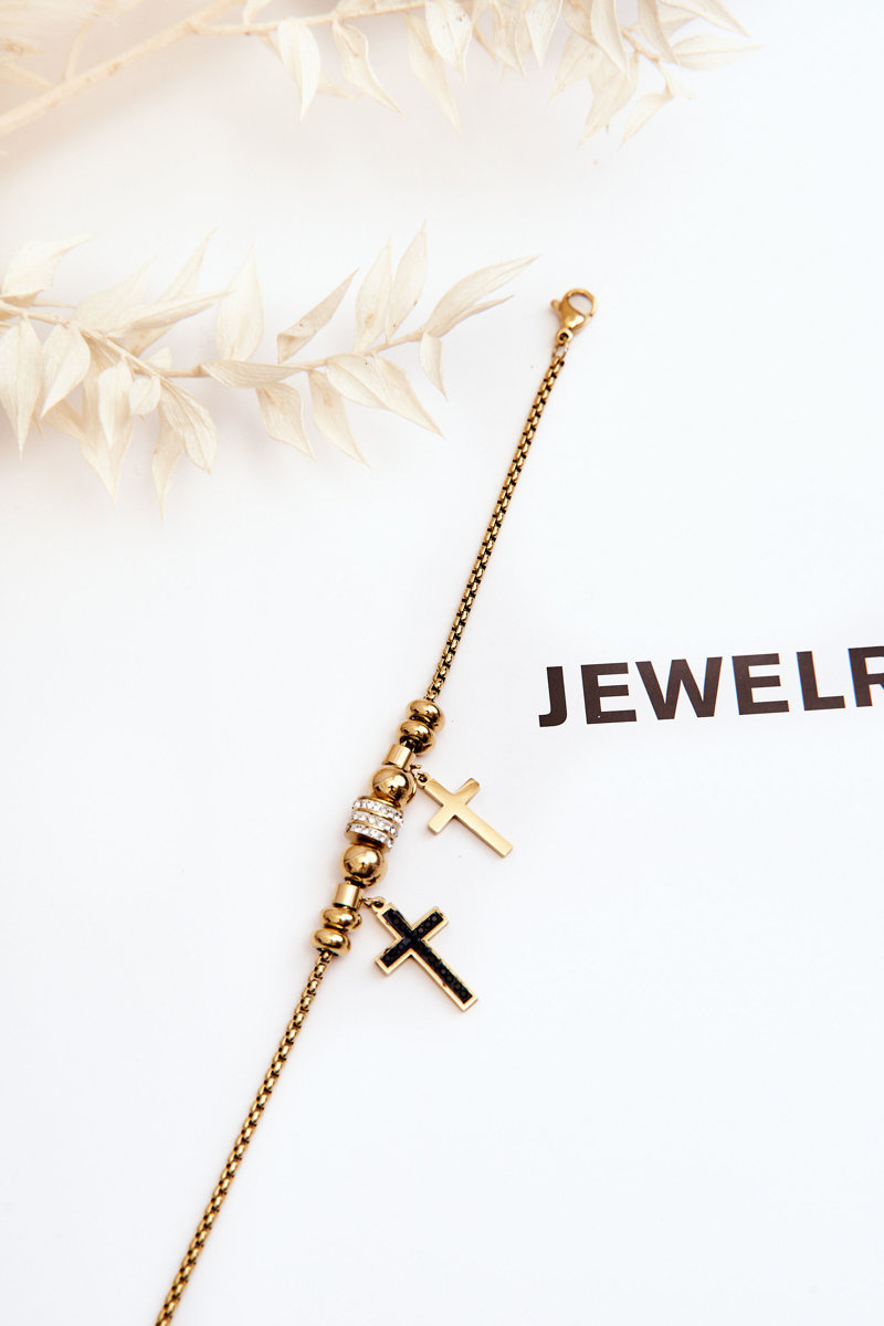 jedinečný a elegantný dámsky náramok vyrobený z nehrdzavejúcej ocele. Má schopnosť upraviť dĺžku. Náramok s jemnou väzbou s masívnejšími dekoráciami vo forme krížov a zirkónov. Vyzerá to veľmi elegantne. Budete ho nosiť ako doplnok k mnohým štýlom. Nezabudnite skontrolovať našu zostávajúcu ponuku dostupných šperkov. Skvelý model, musíte ho mať!