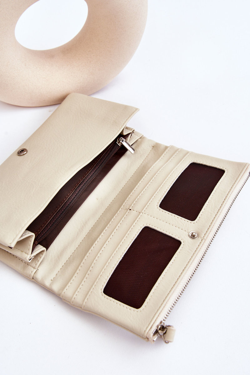 Veľká dámska peňaženka pripevnená lisom a zipsom. Bola vyrobená z ekologickej kože. Vo vnútri sú otvorené komory a jedna uzavretá zipsom. Peňaženka okrem toho obsahuje aj veľa miest pre vizitky alebo kreditné karty. Vonku je tiež ďalšie vrecko uzavreté zipsom a ďalšou komorou pripevnenou práškom. Táto peňaženka bude umiestnená najuznávanejšie veci, napríklad: dokumenty alebo peniaze.