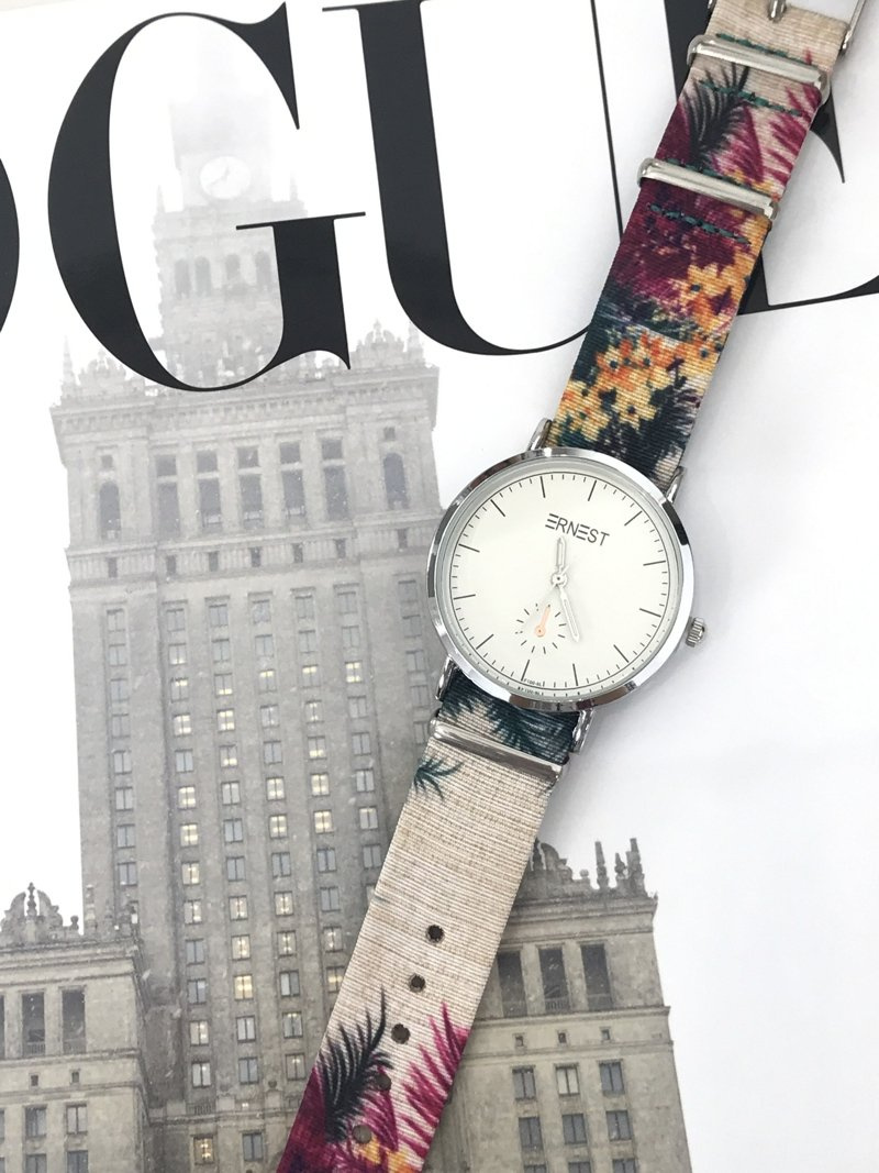 Ernest je svetová značka, ktorú oceňujú ženy na celom svete. Model Flores je nádherné hodinky vytvorené pre ženy, ktoré milujú vkusné doplnky pre svoje štylizácie. Plochý posúvač, ktorý v kombinácii s pásom v kvetinových vzoroch dodáva neobvyklý vzhľad. Obálka je vyrobená z chirurgickej ocele, pás má možnosť ľahkého a rýchleho nastavenia. Vysoko kvalitný mechanizmus a obálka.