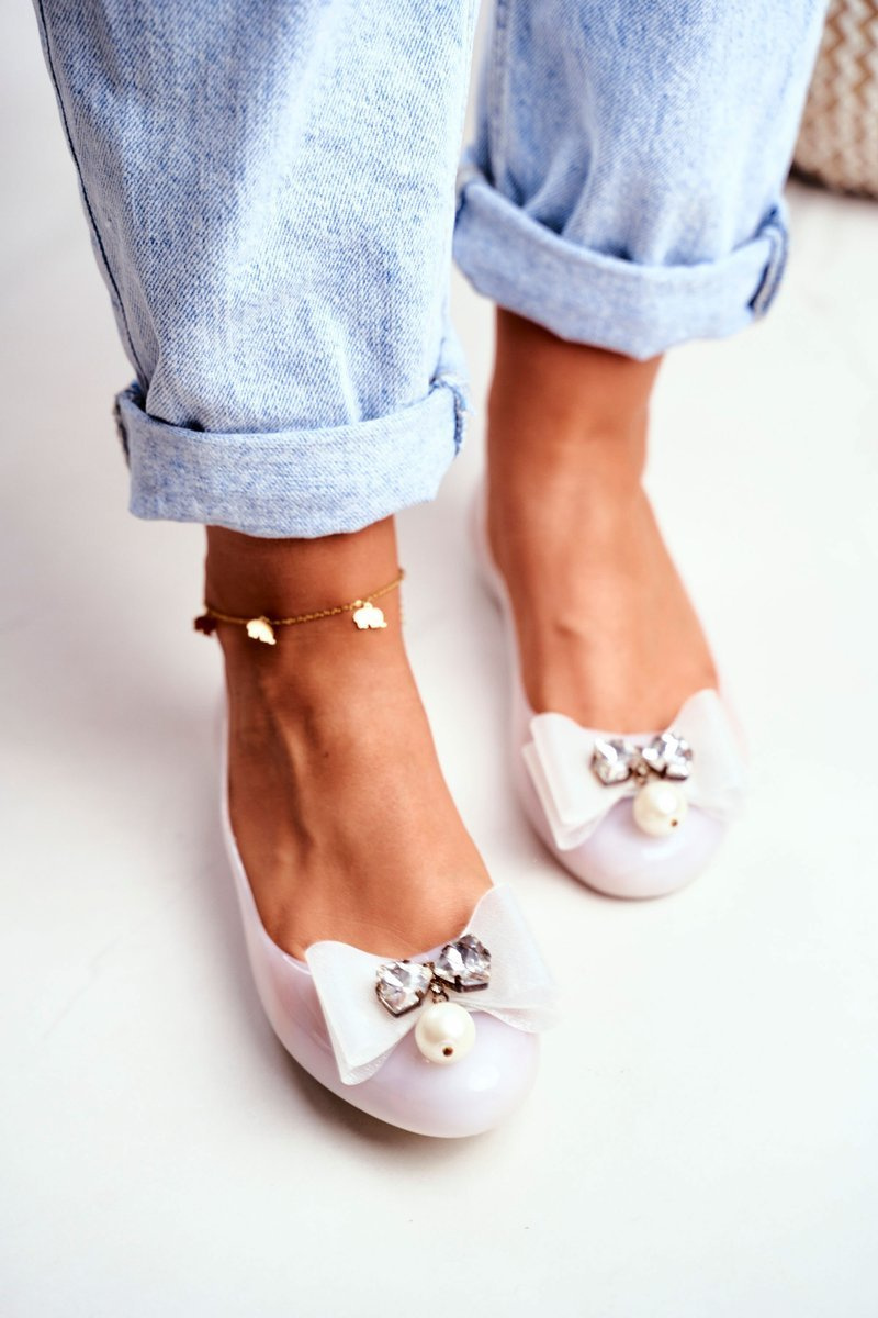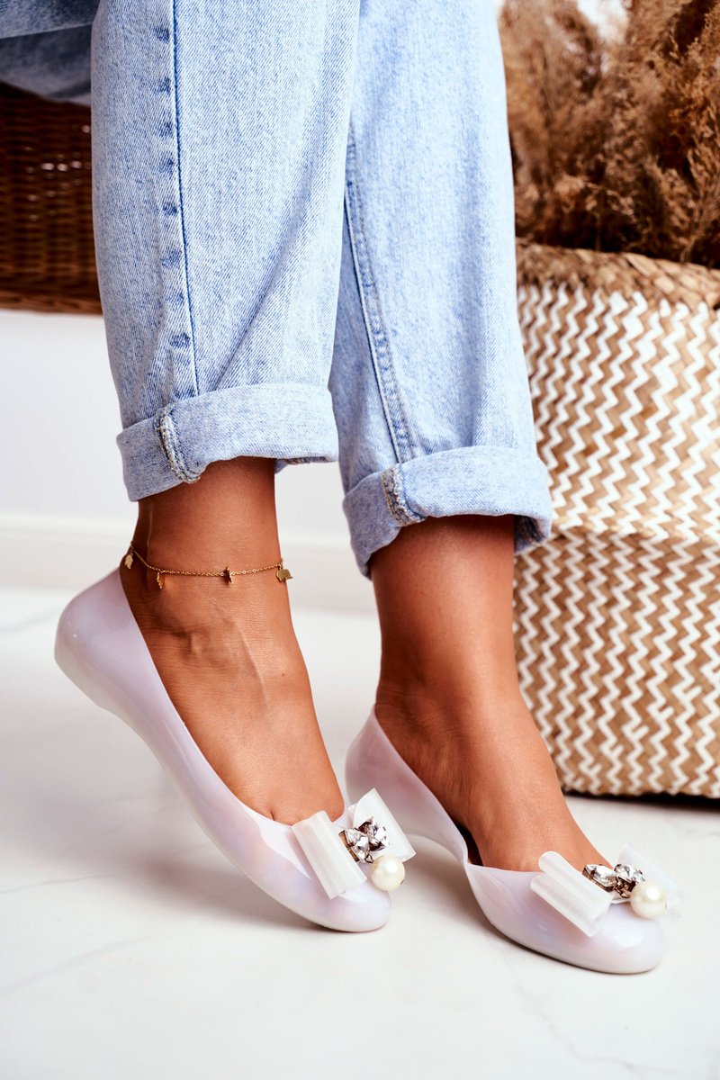 Skvelý gumový meliski! Nadčasový model, ktorý vyhovuje všetkým! Štýlové luky zdobené bielym perlom a zirkónmi. Že tieto mimoriadne pohodlné topánky budú fungovať každý deň aj na návšteve. Sú nápadné! Gumový plast, z ktorého boli vyrobené, poskytne vaše nohy pohodlie a pohodlie. Kúpte si teraz za skvelú cenu!
