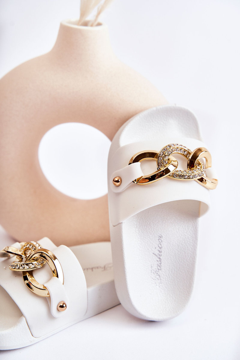 Gumové detské papuče s dekoratívnou reťazou biela suzie