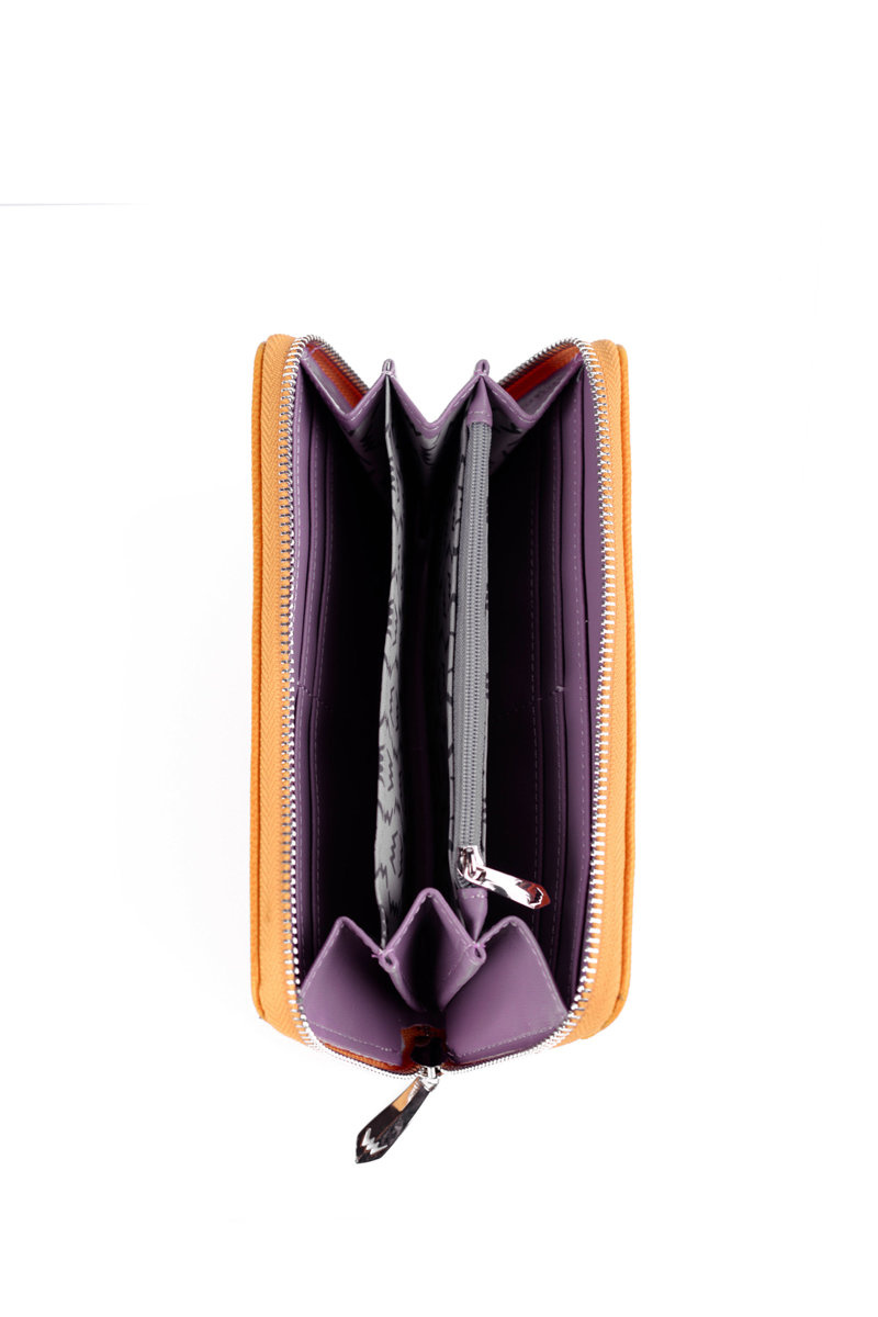Veľká peňaženka vyrobená z ekologickej kože. Predná strana má znak, zatiaľ čo na zadnej strane je vrecko pripevnená zipsom. Okrem toho je k peňaženke pripevnený prúžok. Vo vnútri má priestor pre vizitky a bankovky, ako aj siláž pripevnenú zipsom. Krásna klasická peňaženka dostupná v mnohých módnych farbách. Musíš to mať!