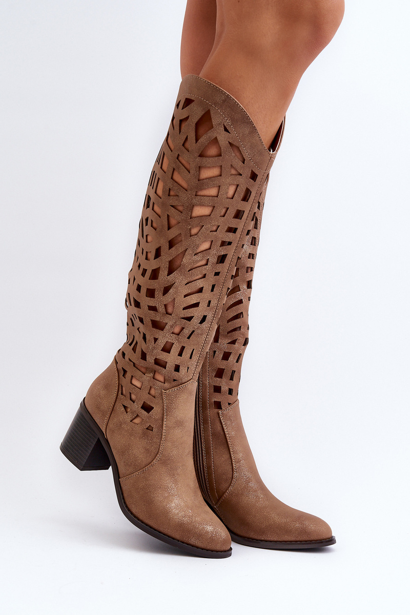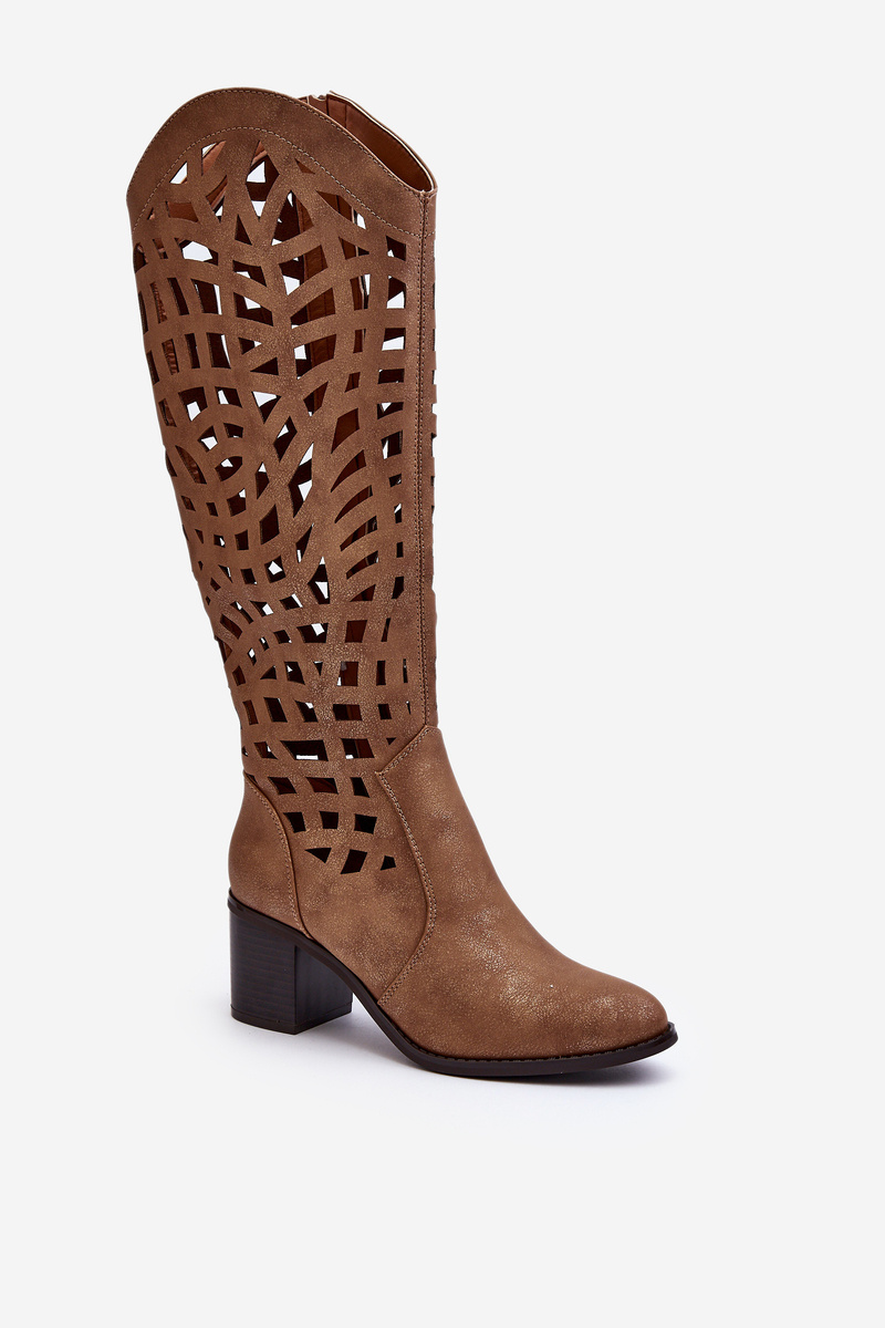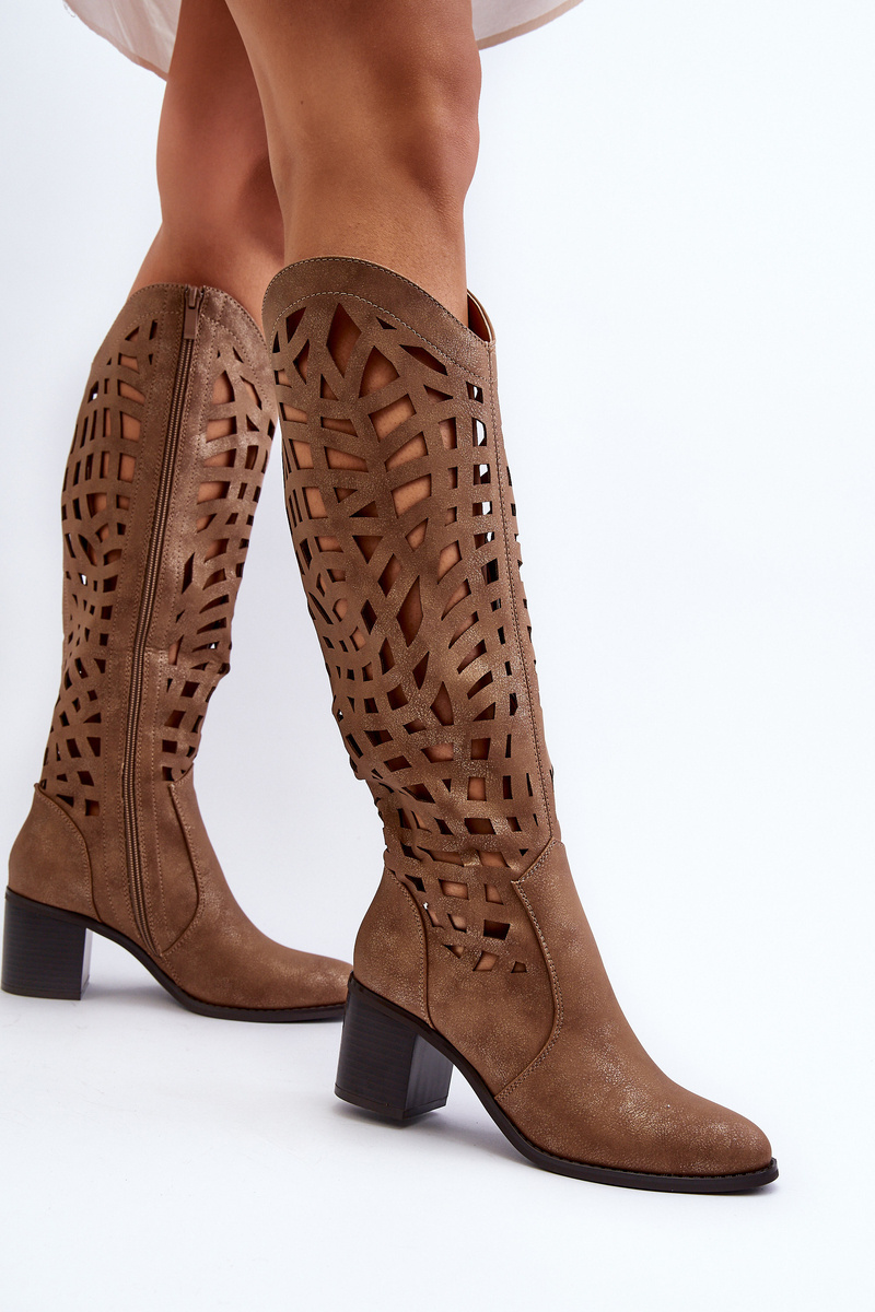 Hnedé čipkované topánky na opätku Pinkema