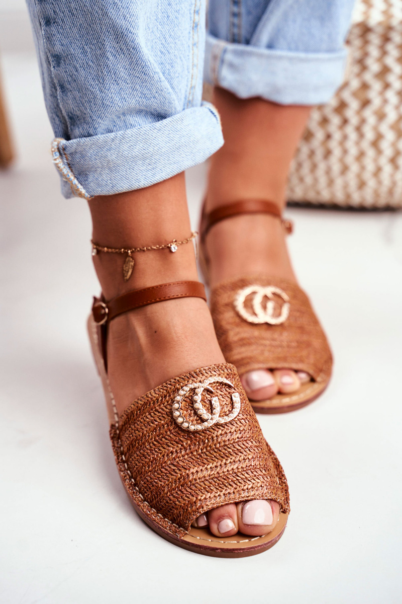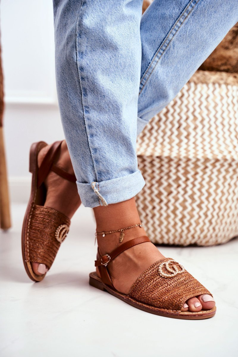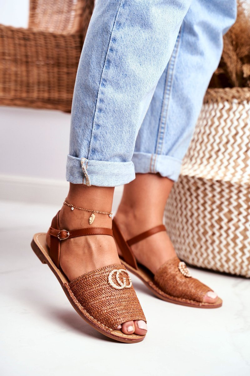 Hnedé dámske ploché sandále lu boo pletené Felicia