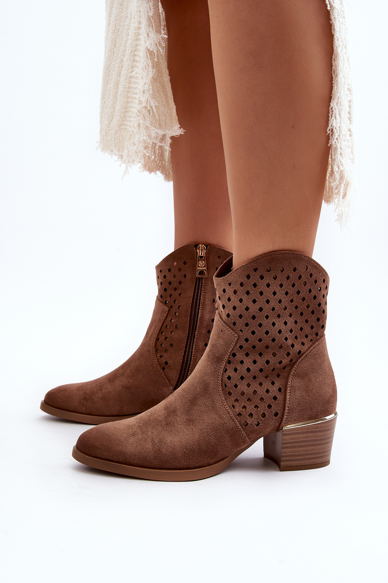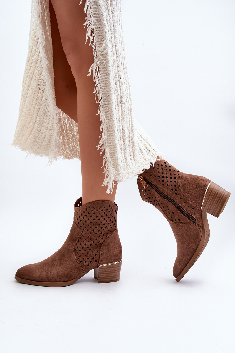Hnedé nízke podpätkové členkové topánky s výrezmi Cilvana