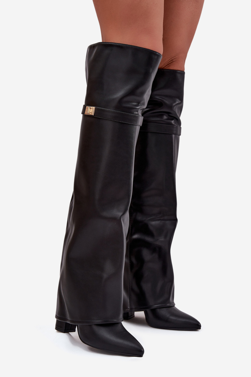 Izolované čižmy s preklopeným horným dielom až po kolená podpätok blok čierne Serelle