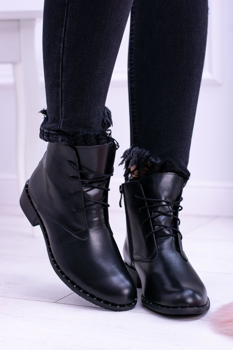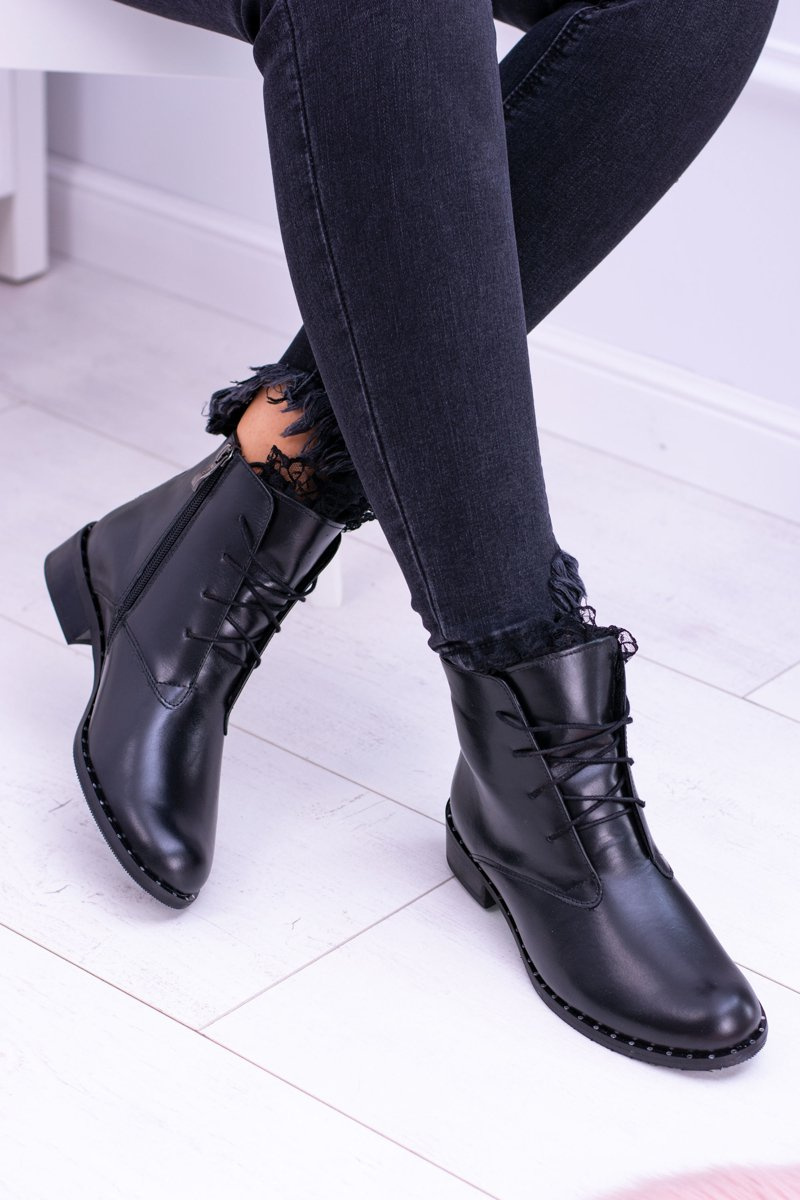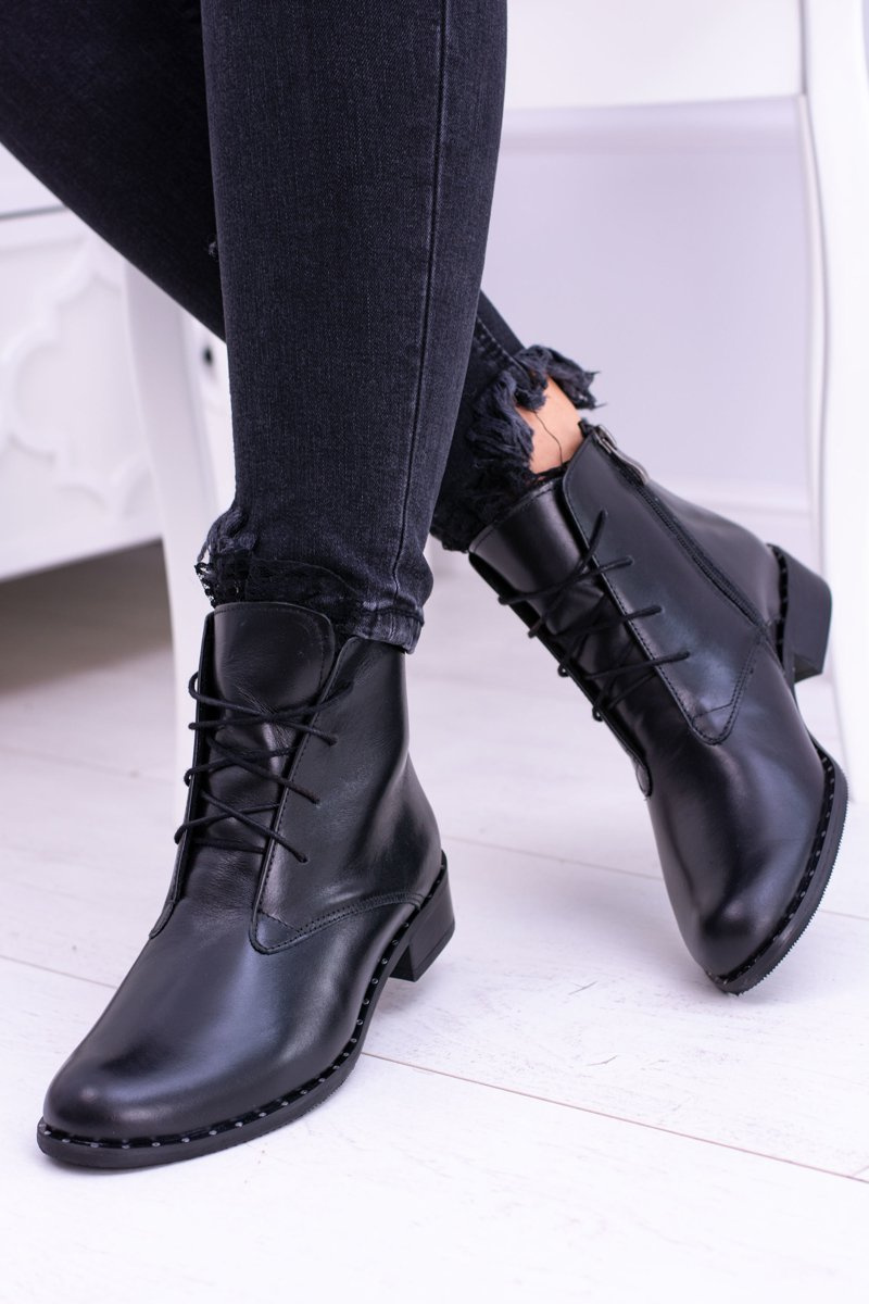 Izolované kožené čierne dámske topánky s čipkou Millano