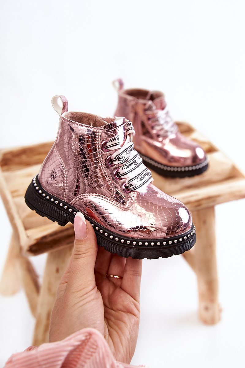 Módne detské topánky boli vyrobené z ekologickej kože. Majú väzbu vo forme pásky a posúvača na boku hornej časti. Stužnená päta a podrážka, ktorá nie je na sklzu, zaistí stabilitu v každom kroku. Podrážka bola zdobená kamienkami. Izolovaná vo vnútri obuvou prikrývkou. Vložka do týchto topánok je vyrobená z prírodnej kože. Pri výbere veľkosti nasmerujte tabuľku veľkosti. /27-17.5/28-18/29-19/30-19.5/31-20 cm.