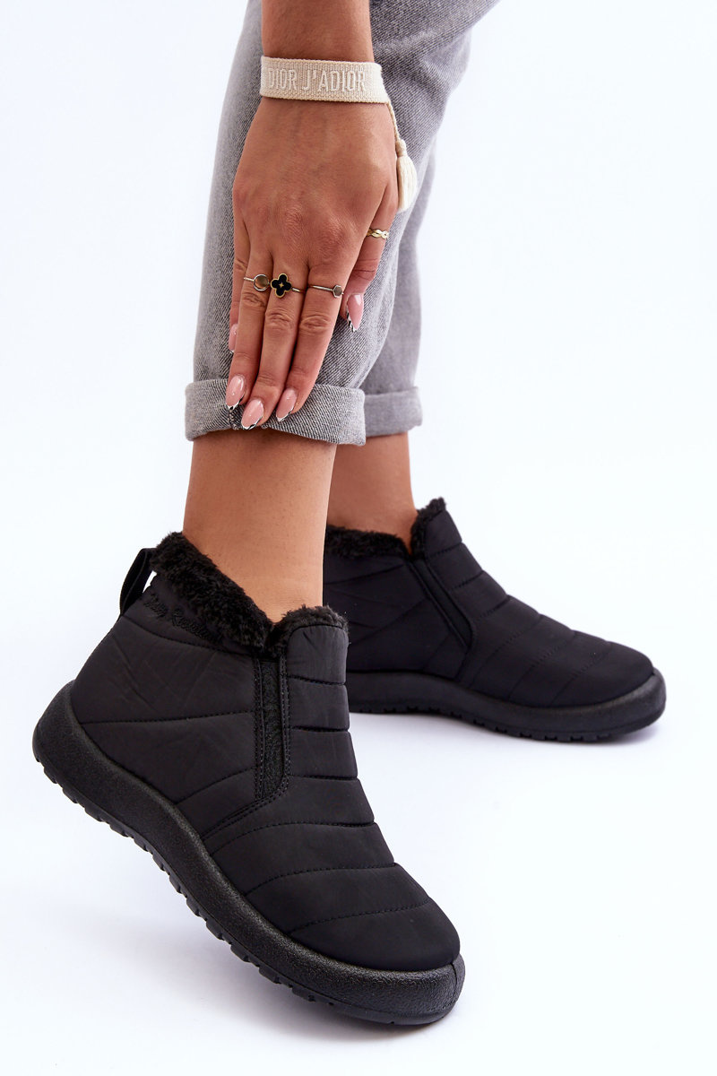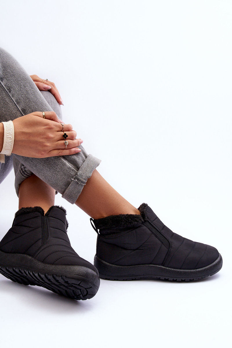 Dámske snehové topánky boli vyrobené z materiálov odolných voči dažďu, mrazu a vetra. Tento model je nastavený na gumovú platformu. Interiér izolovaný s hrubou kožušinou. Na zvršku je veľa šití. Pri výbere veľkosti navrhnite tabuľku veľkosti.