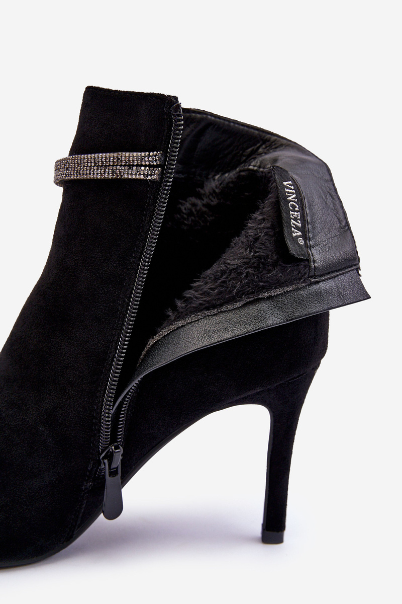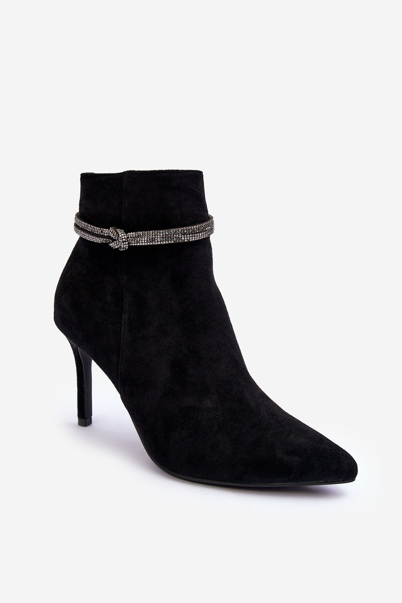 Dámske topánky vyrobené z ekologického semišu. Zastavené do vysokých podpätkov vo forme špendlíka. Na hornej časti dva prepletené pruhy, ktoré majú početné lesklé trysky. Model pripevnený posúvačom zo strany. Nosy v Spitz opticky vymenia nohy. Okrem toho je päta stuhnutá. Topánky sú skvelé v mnohých štýloch, napr. Pre šaty, sukne alebo nohavice. Mali by byť vo vašom šatníku! Pri výbere veľkosti navrhnite tabuľku veľkosti.