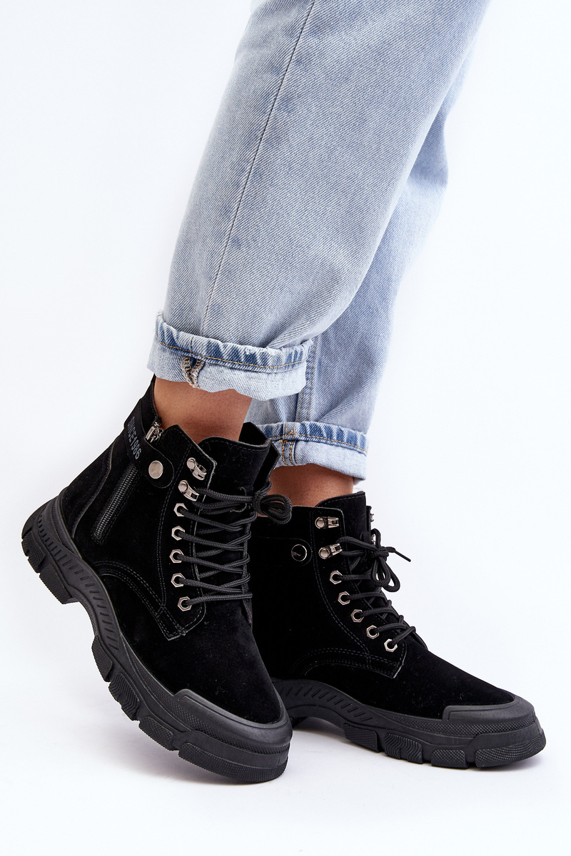 Dámske ploché podpätky a platforma. Vyrobené z ekologického semišu. Pripevnený zipsom na vonkajšej strane hornej časti a dodatočne priviazaný. Päta je stuhnutá, nosy sú zaoblené. Masívna podrážka a plochá päta robia topánky stabilné pri používaní na nerovných povrchoch. Činidlo izolovalo hrubú kožušinu. Pri výbere veľkosti navrhnite tabuľku veľkosti.