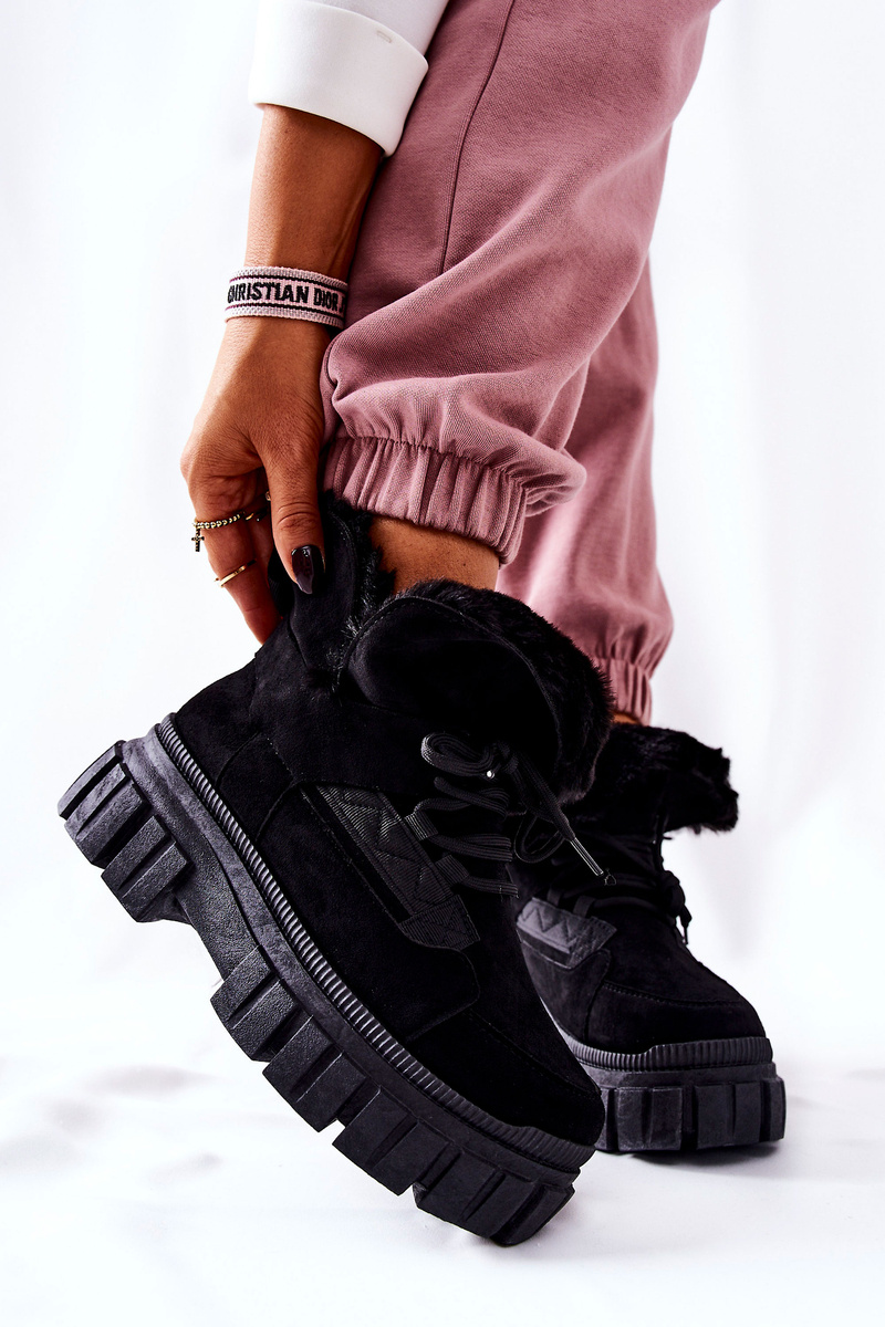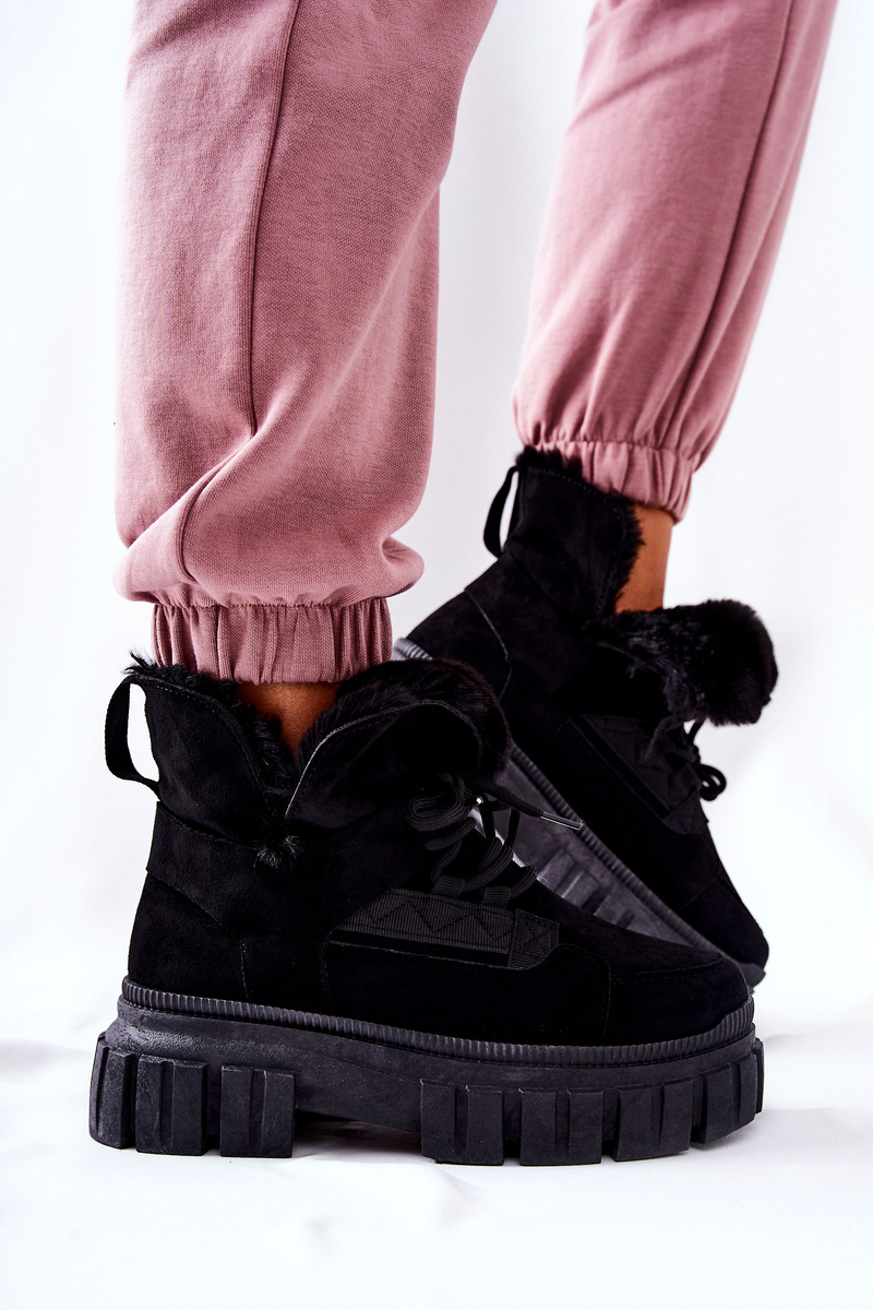 Čižmy boli vyrobené zo semišovej ekologickej kože. Vo vnútri je na dotykovej kožušine teplá a príjemná. Masívna, hrubá podrážka zaisťuje stabilitu. Topánky majú puto, vďaka čomu môžu byť prispôsobené úseku nohy. Ideálne pre zimné dni! Pri výbere veľkosti navrhnite tabuľku veľkosti.