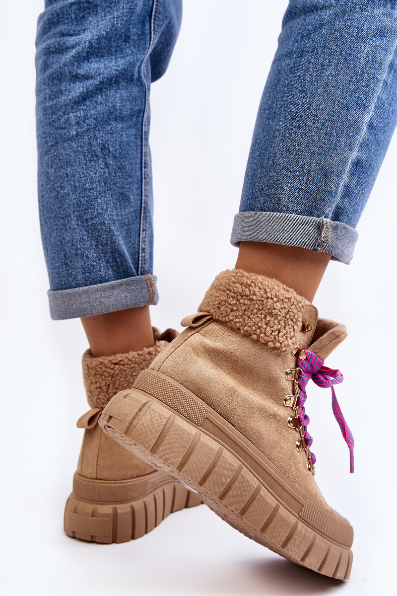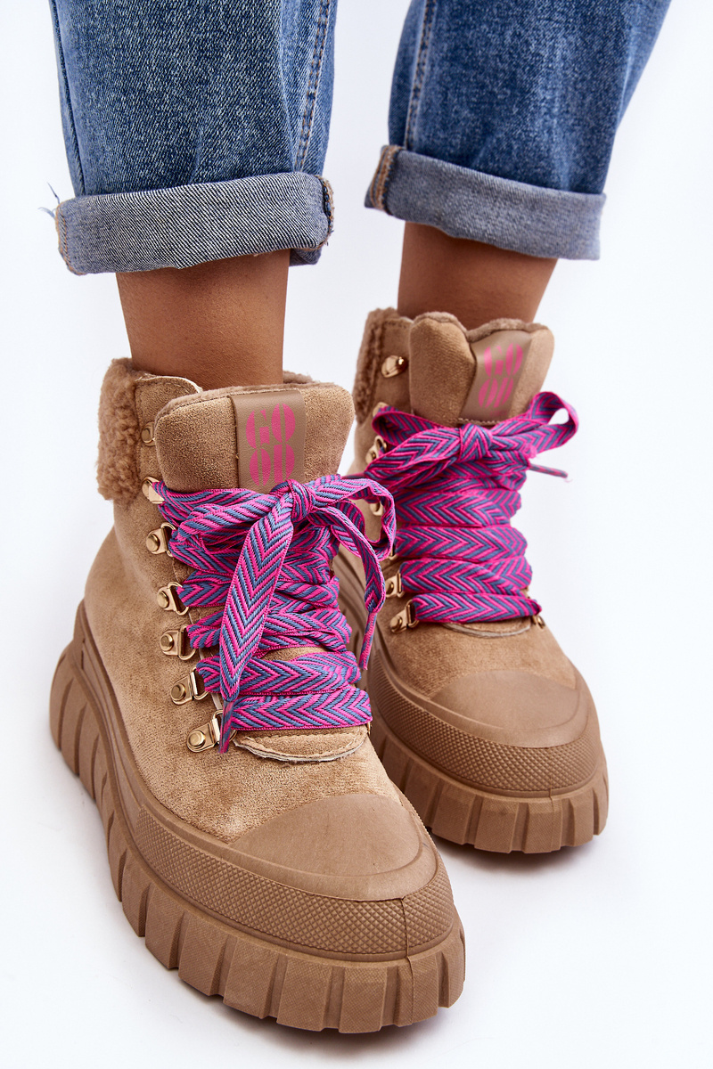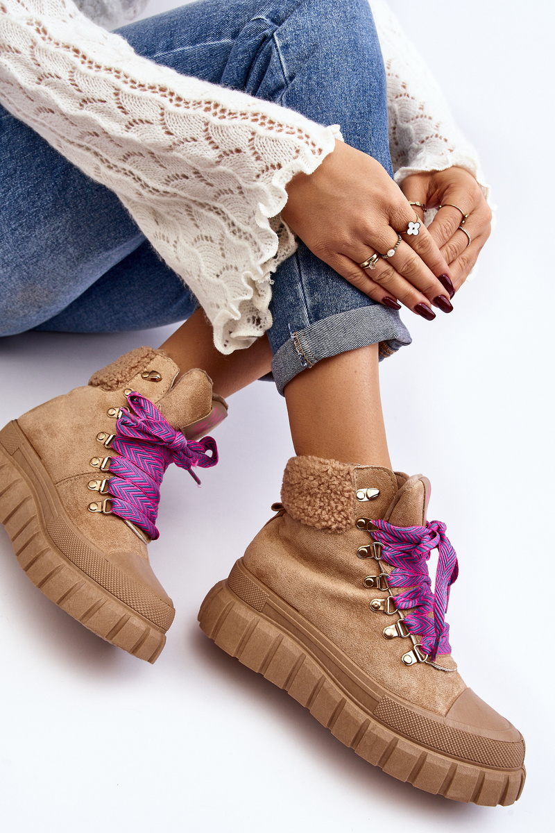 Dámske turistické topánky boli vyrobené z ekologického semišu. Zaručené na masívnej plošine vyrobenej z gumového plastu. Interiér bol izolovaný prikrývkou obuvi, ktorá zaisťuje pohodlie a teplo počas chladnejších dní. Nosy sú zaoblené, čo dodáva topánkam jemné kúzlo. Klasicky šnurovaný model. Módna obuv je vynikajúcim doplnkom vášho šatníka! Pri výbere veľkosti navrhnite tabuľku veľkosti. p>