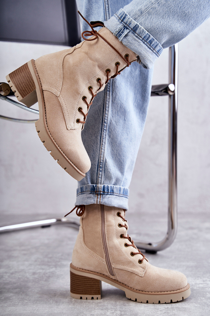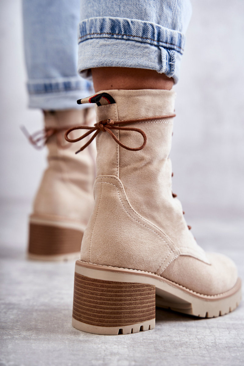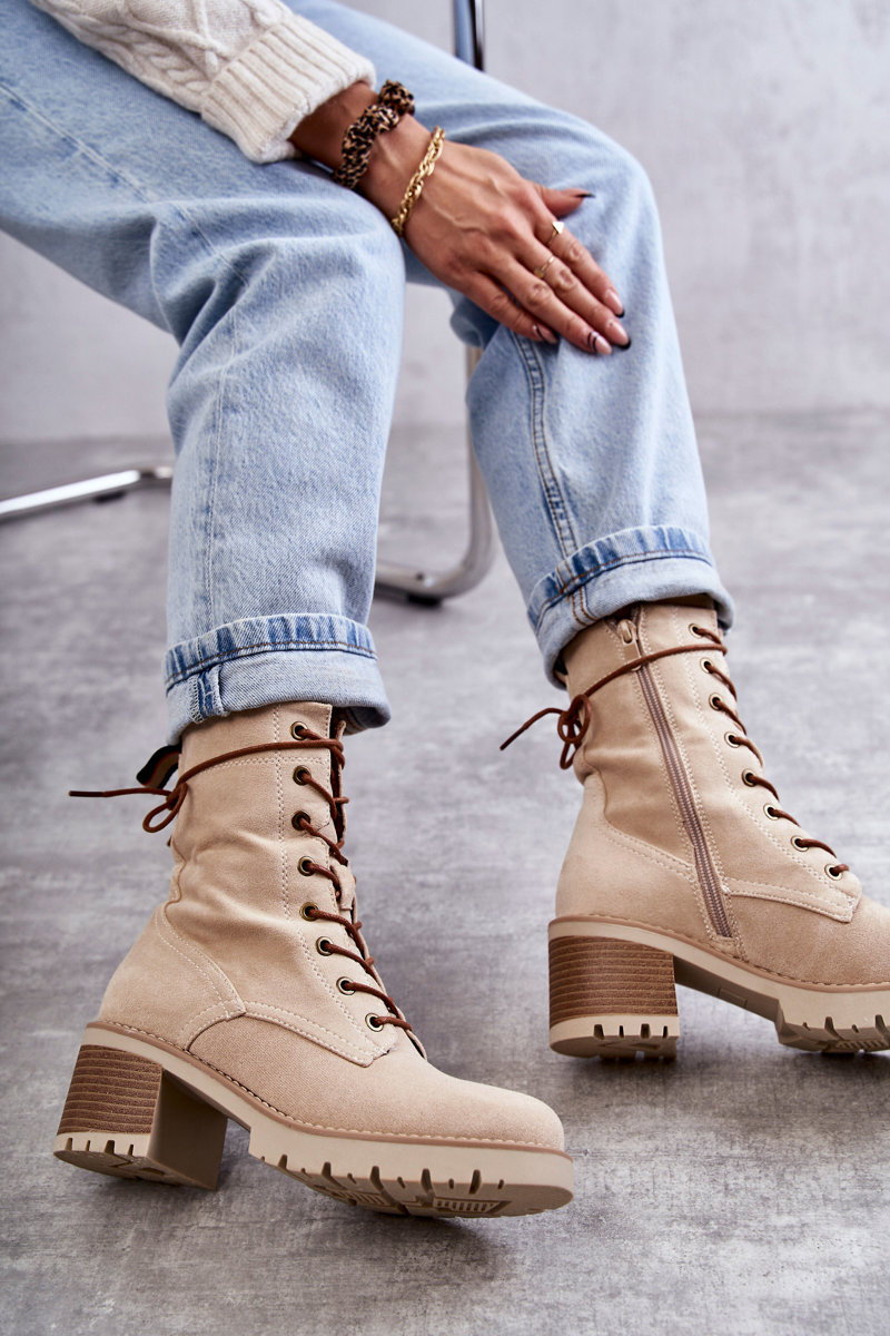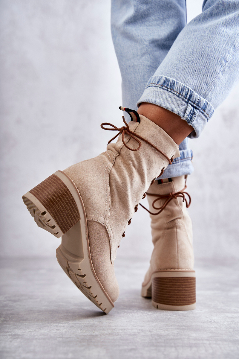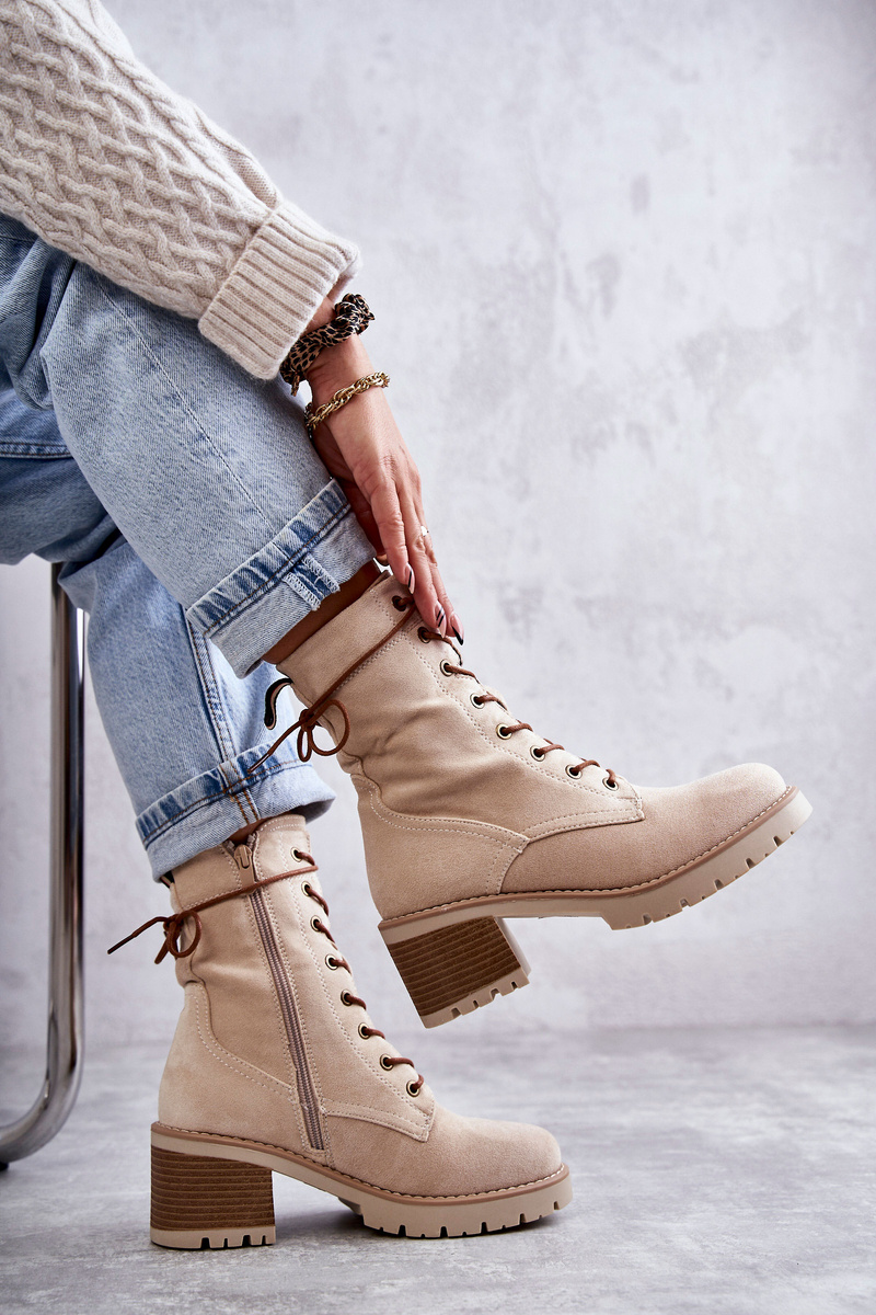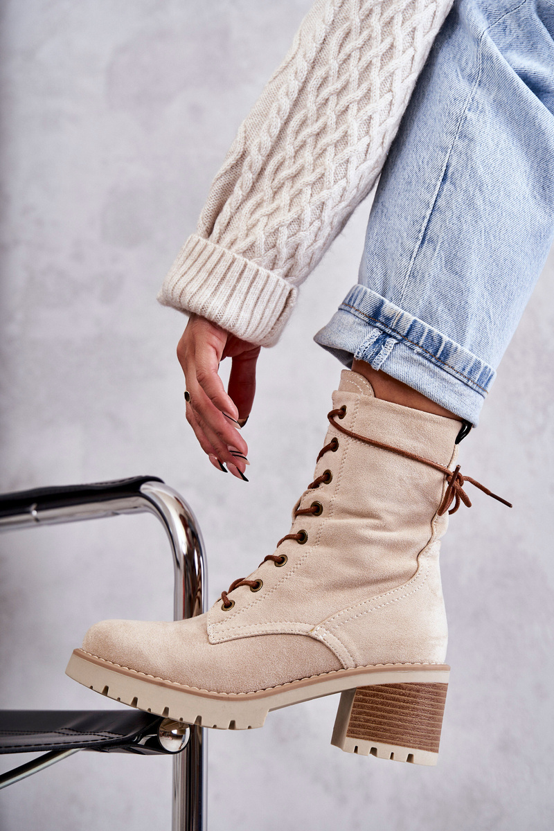Tento model bol vyrobený z ekologického semišu. Topánky pripevnené na boku s ďalším šnurovaním. Podľa gumového plastu je nekvalitný. Čižmy boli zabudované na pätách vo forme masívneho stĺpika a jemnej plošiny. Tento model má izoláciu vo forme prikrývky obuvi. Okrem toho je päta stuhnutá. Pri výbere veľkosti navrhnite tabuľku veľkosti.