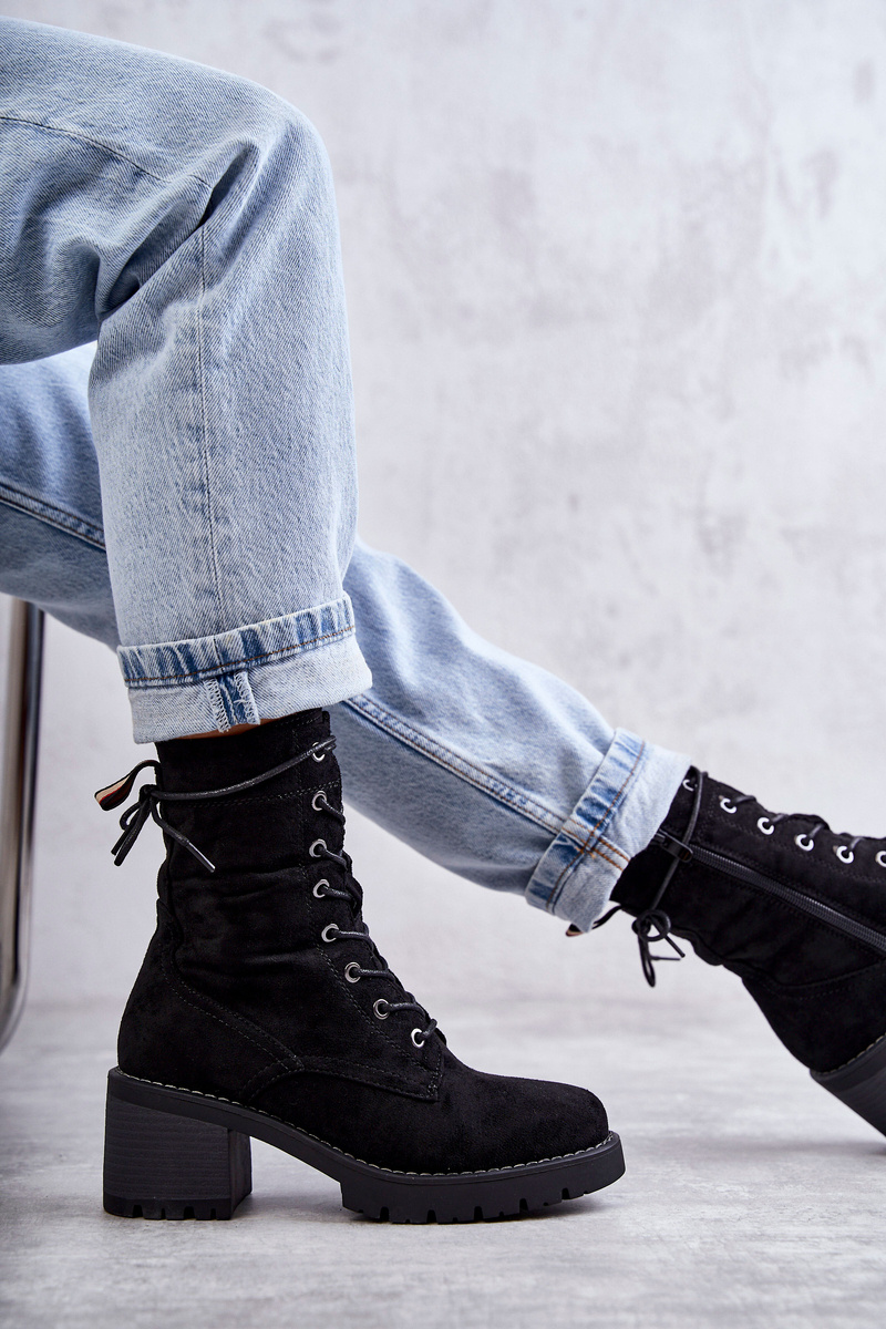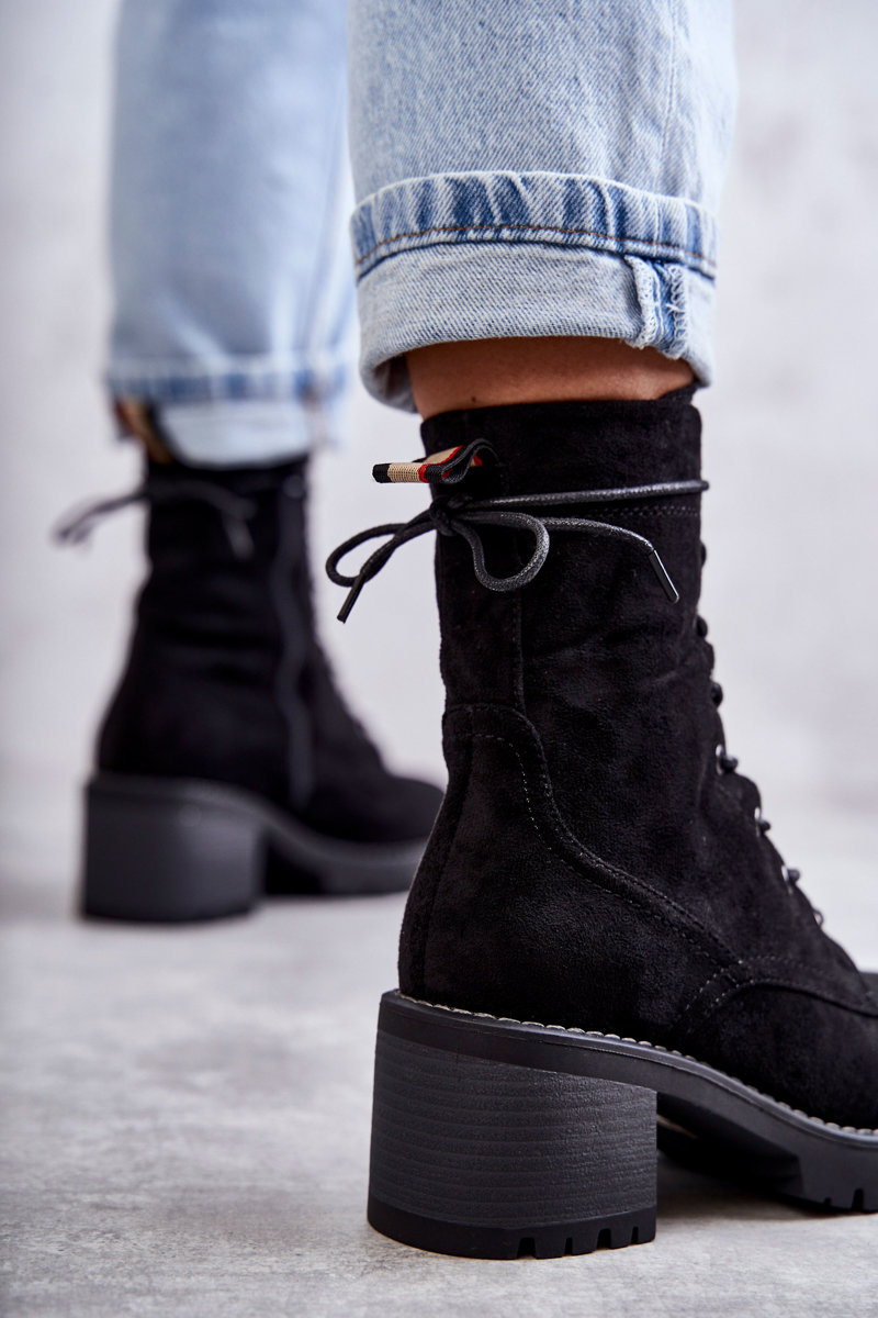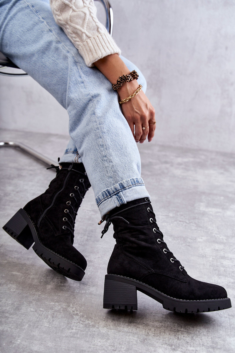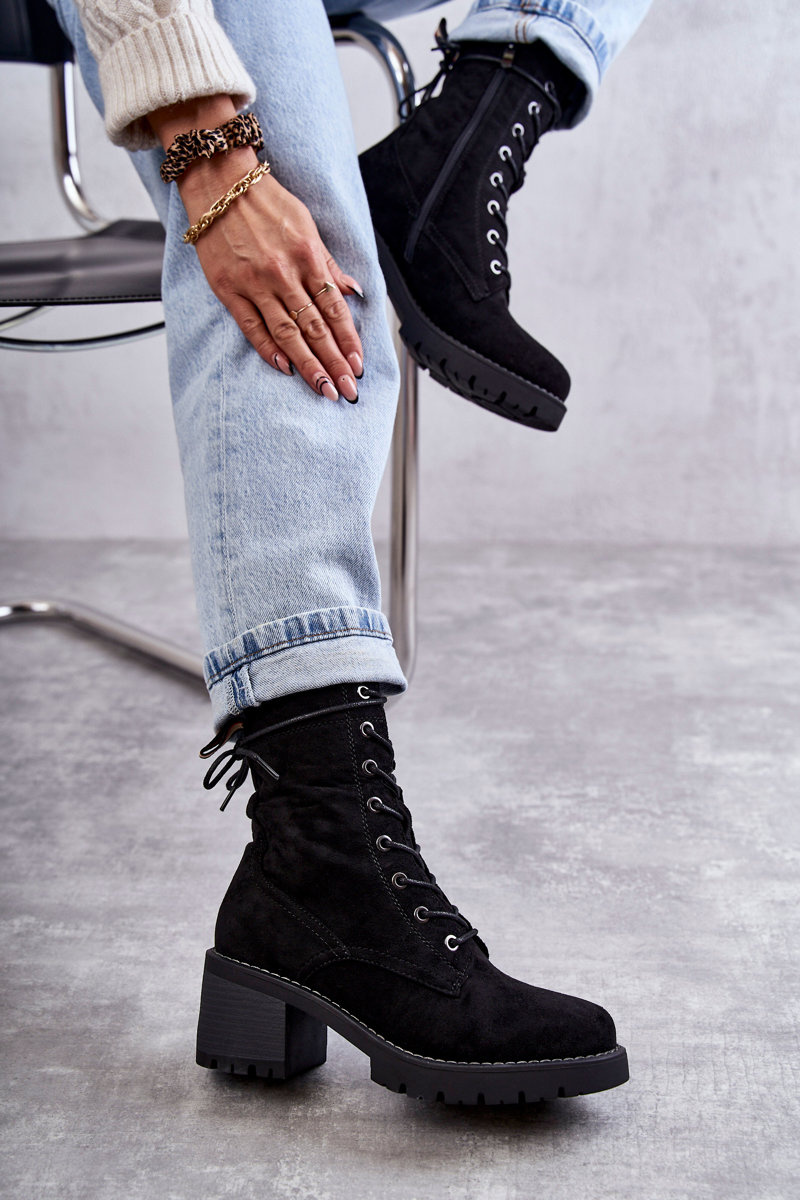Tento model bol vyrobený z ekologického semišu. Topánky pripevnené na boku s ďalším šnurovaním. Podľa gumového plastu je nekvalitný. Čižmy boli zabudované na pätách vo forme masívneho stĺpika a jemnej plošiny. Tento model má izoláciu vo forme prikrývky obuvi. Okrem toho je päta stuhnutá. Pri výbere veľkosti navrhnite tabuľku veľkosti.
