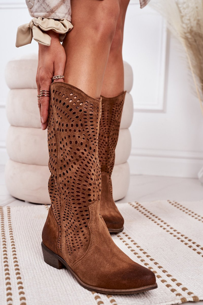 Jarné otvorené semišové topánky vynikajúce 1229 koňak