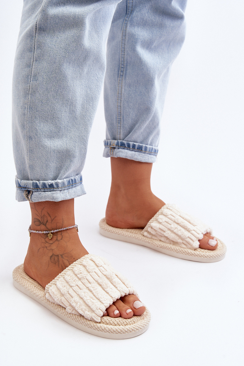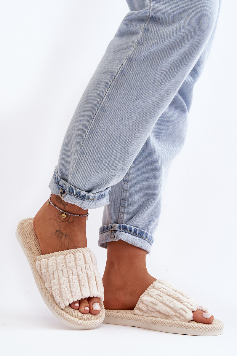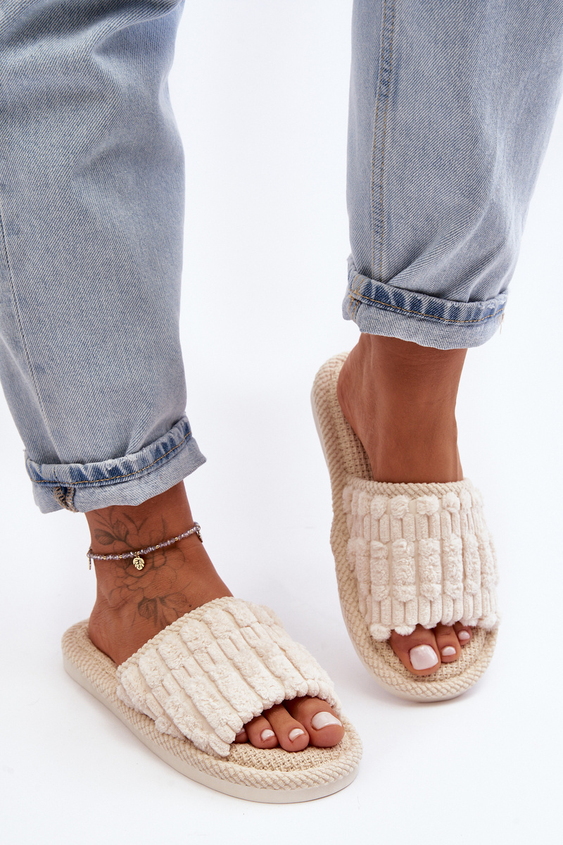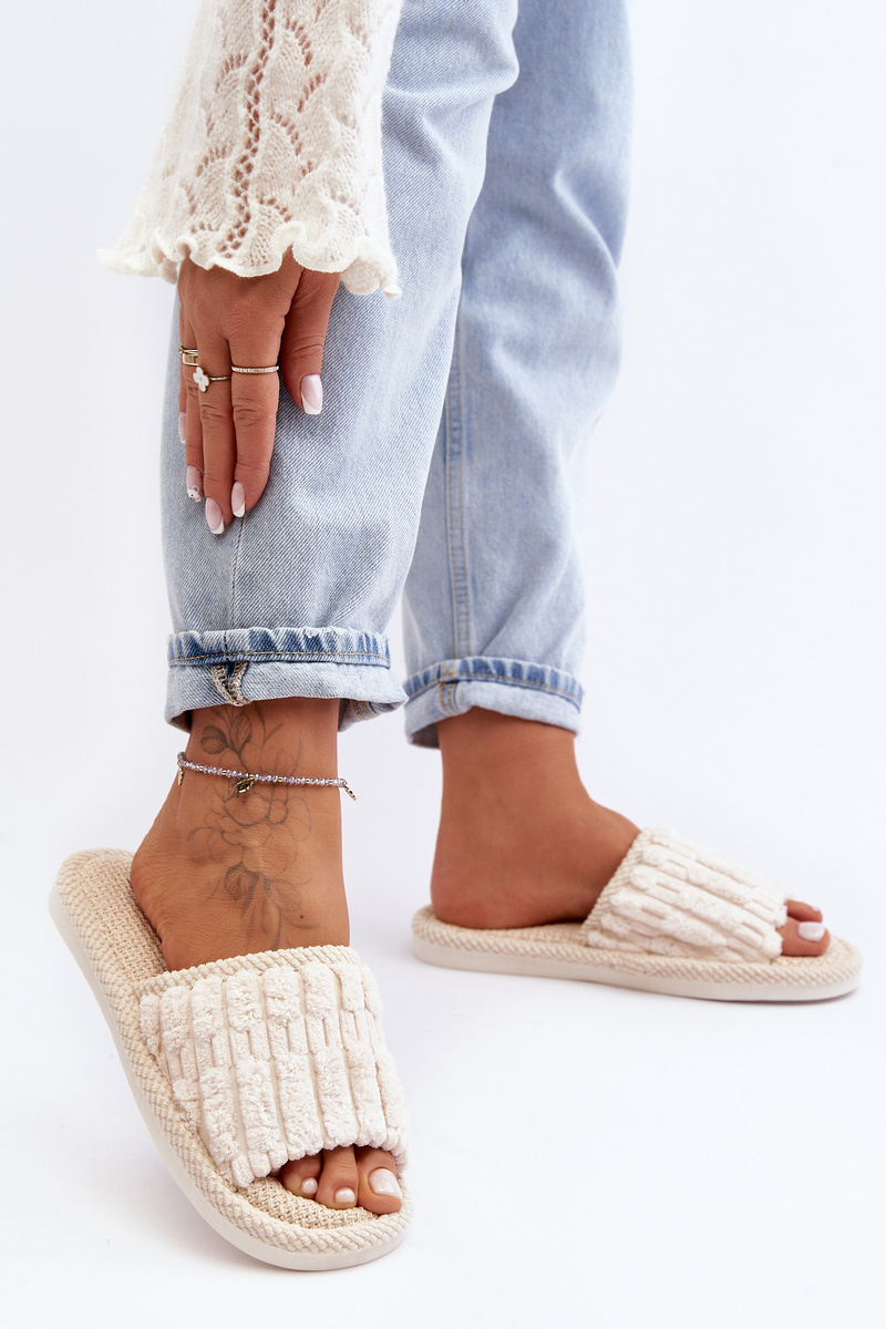 Pohodlné papuče vkĺzli so širokým podporným pásom. Postavte sa na plochú podrážku, zabezpečte stabilitu a pohodlie použitia. Vyrobené z pekného do dotykového textilného materiálu. Noski objavil. Tento model sa určite stane obľúbeným doplnkom vášho domáceho odpočinku! Pri výbere veľkosti postupujte podľa tabuľky veľkosti.