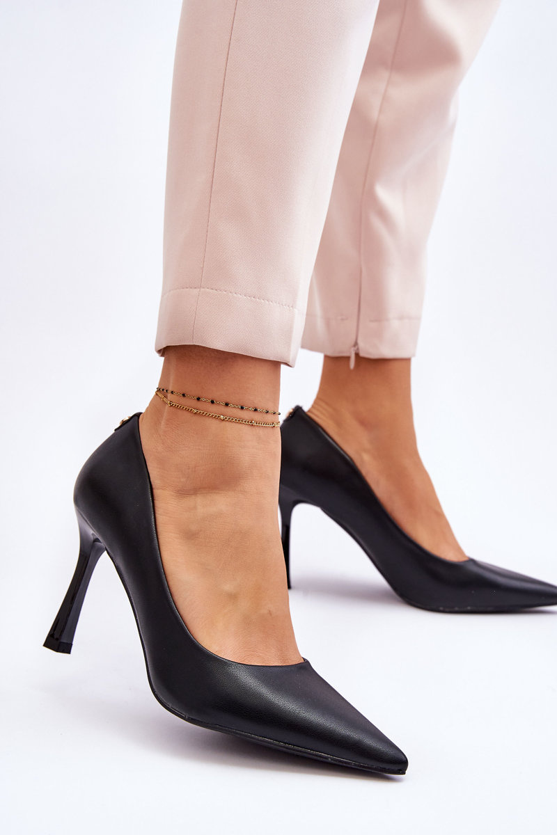 Klasické kožené čierne vysoké podpätky Kelsey