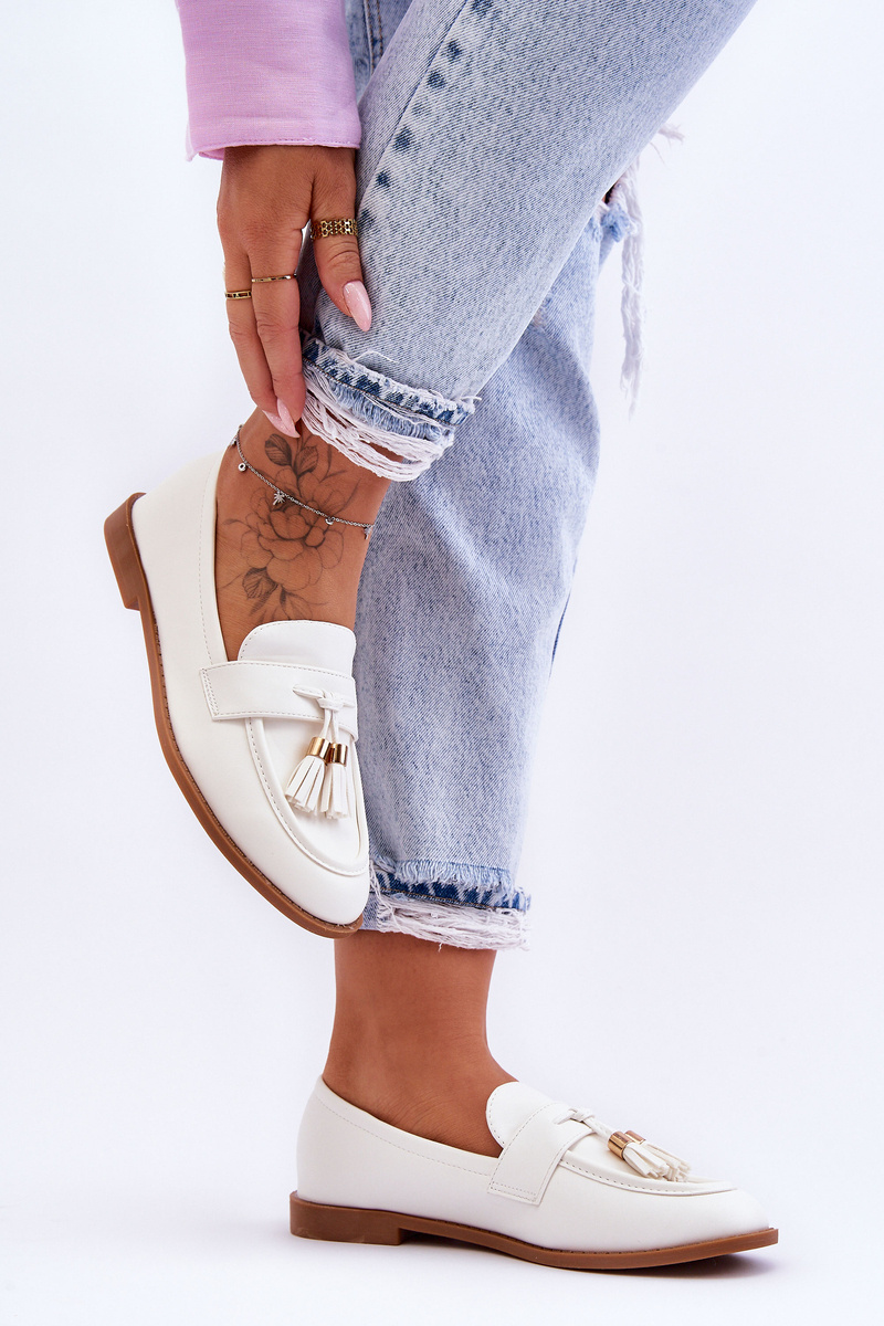 Klasické kožené mokasíry s okrajmi biele camis