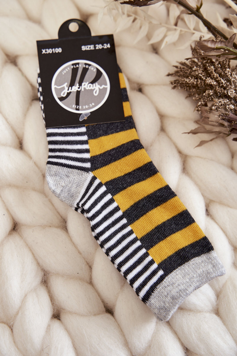 Klasika, detské ponožky so zaujímavým vzorom vo forme rôznych veľkostí pruhov. Ideálne pre chladnejšie dni. Perfektné pri chôdzi s dieťaťom alebo pri hraní doma. Ponožky boli vyrobené zo 100% bavlny. Flexibilný sťahovač sa správne prispôsobí úseku nohy.