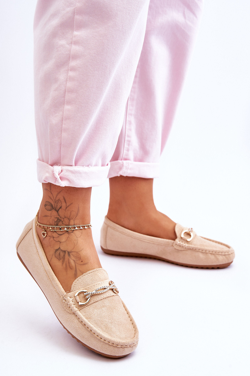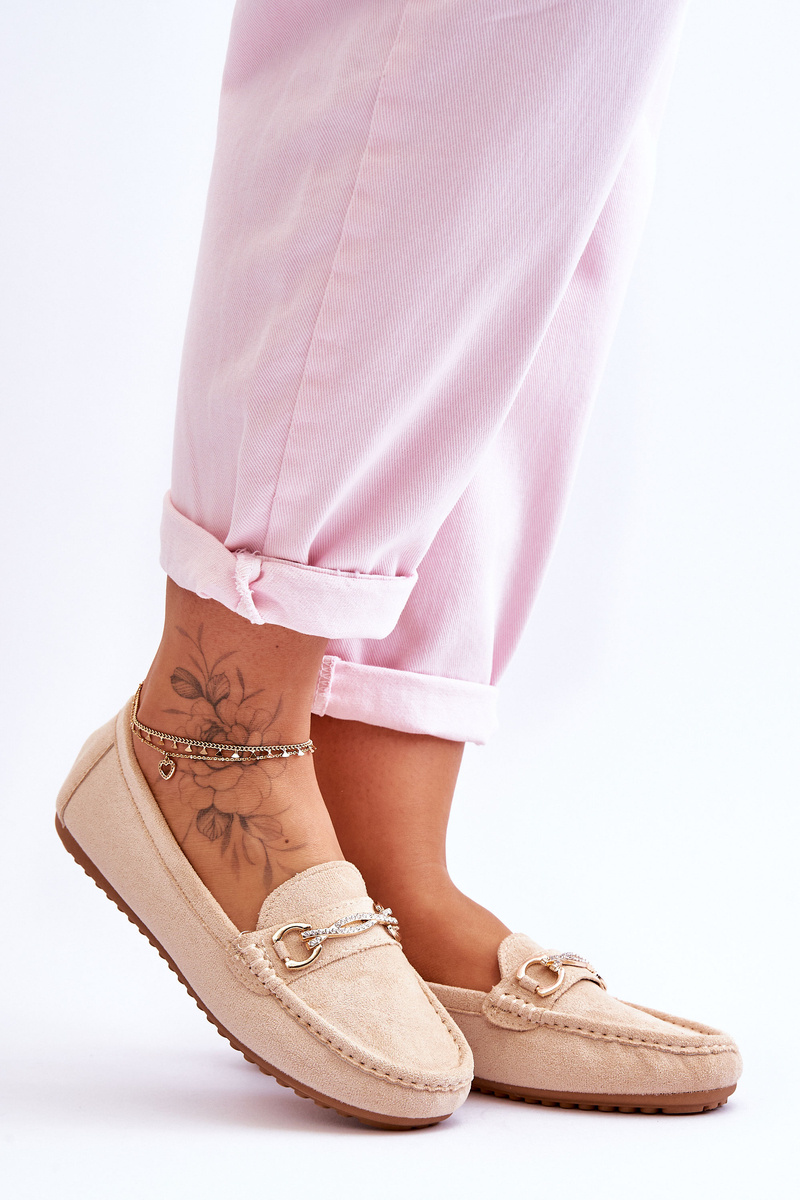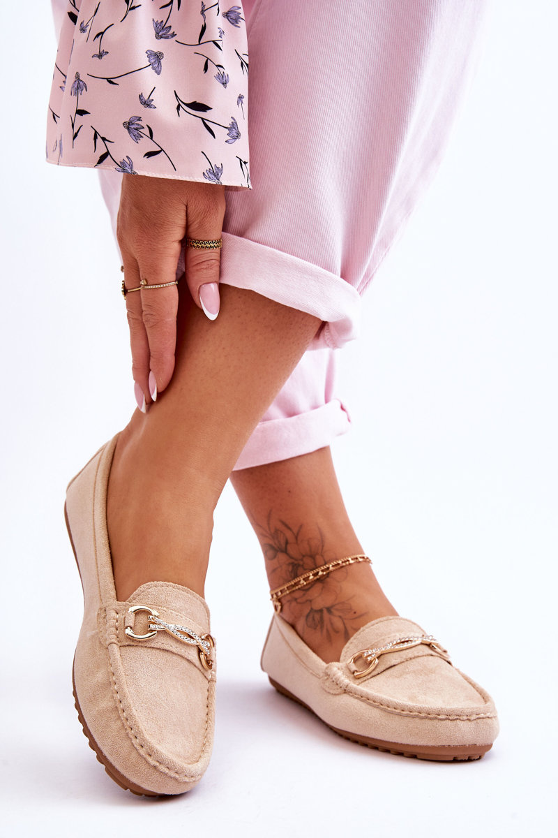 Klasické semišové mokasíny s ozdobou béžovou AMERA