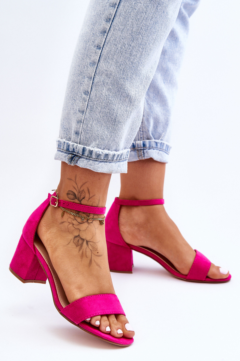 Klasické semišové sandále s nízkymi vysokými podpätkami Fuchsia svadobné cesty