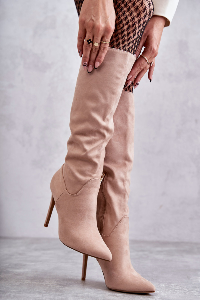 Klasické dámske topánky s zvrškom pred kolenom. Majú jemné šitie. Vyrobené z ekologického semišu, ktorý sa má dotknúť. Model bol zabudovaný do pätiek vo forme špendlíka. Stuhnutá päta. Na strane pripevnený zipsom. Pohodlný model, ktorý by mal byť vo vašom šatníku! Použijete ich v mnohých štýloch! Musia byť vaše! Pri výbere veľkosti navrhnite tabuľku veľkosti.