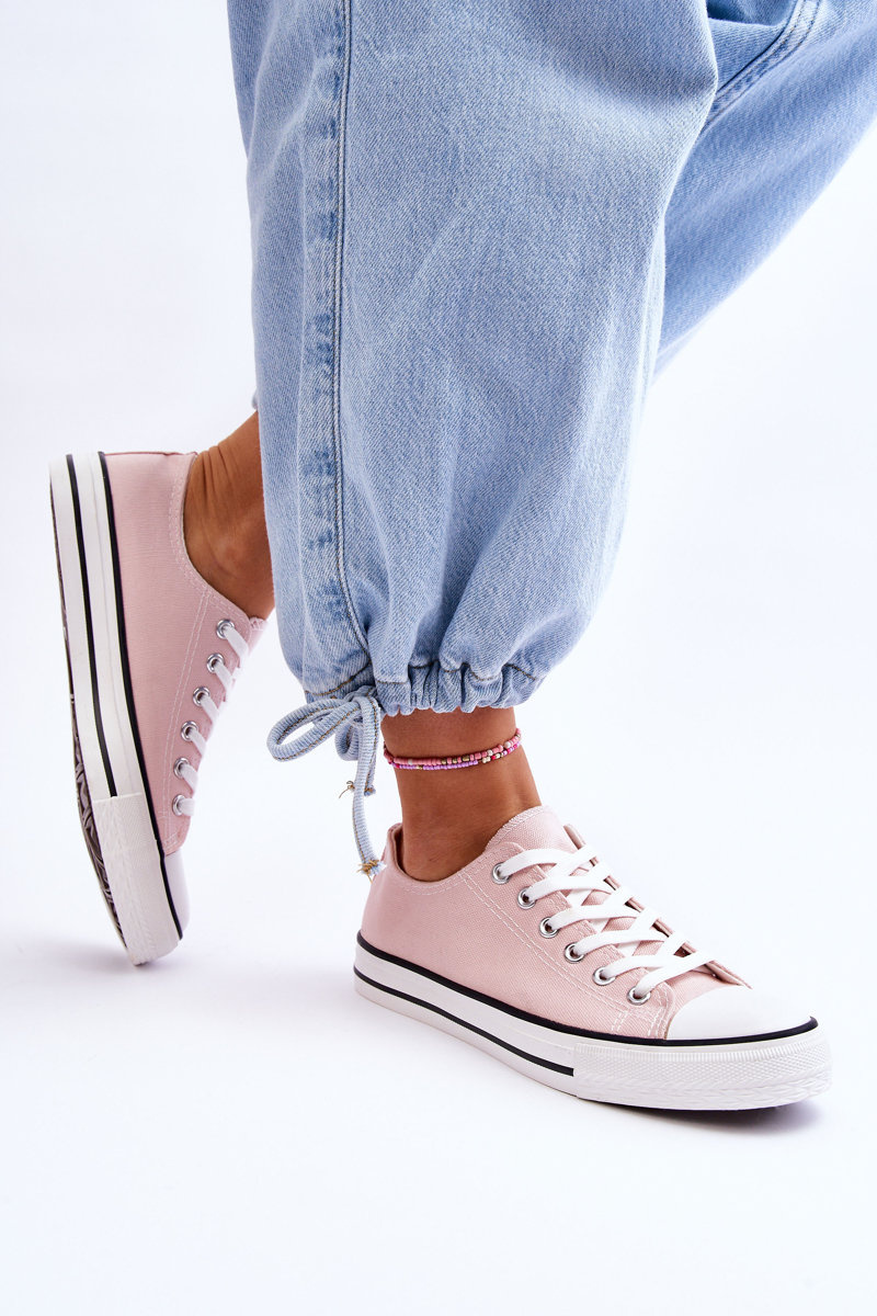 Klasické, šnurované dámske tenisky boli vyrobené z textilného materiálu. Majú gumovú podrážku, ktorá je navyše nekĺzaná. Nadčasový model, ktorý by ste mali mať vo svojom šatníku! Určite ich dáte do mnohých štýlov! Nos bol posilnený gumovým plastom. Pohodlná vložka materiálu poskytne pohodlie počas používania. Pri výbere veľkosti navrhnite tabuľku veľkosti.