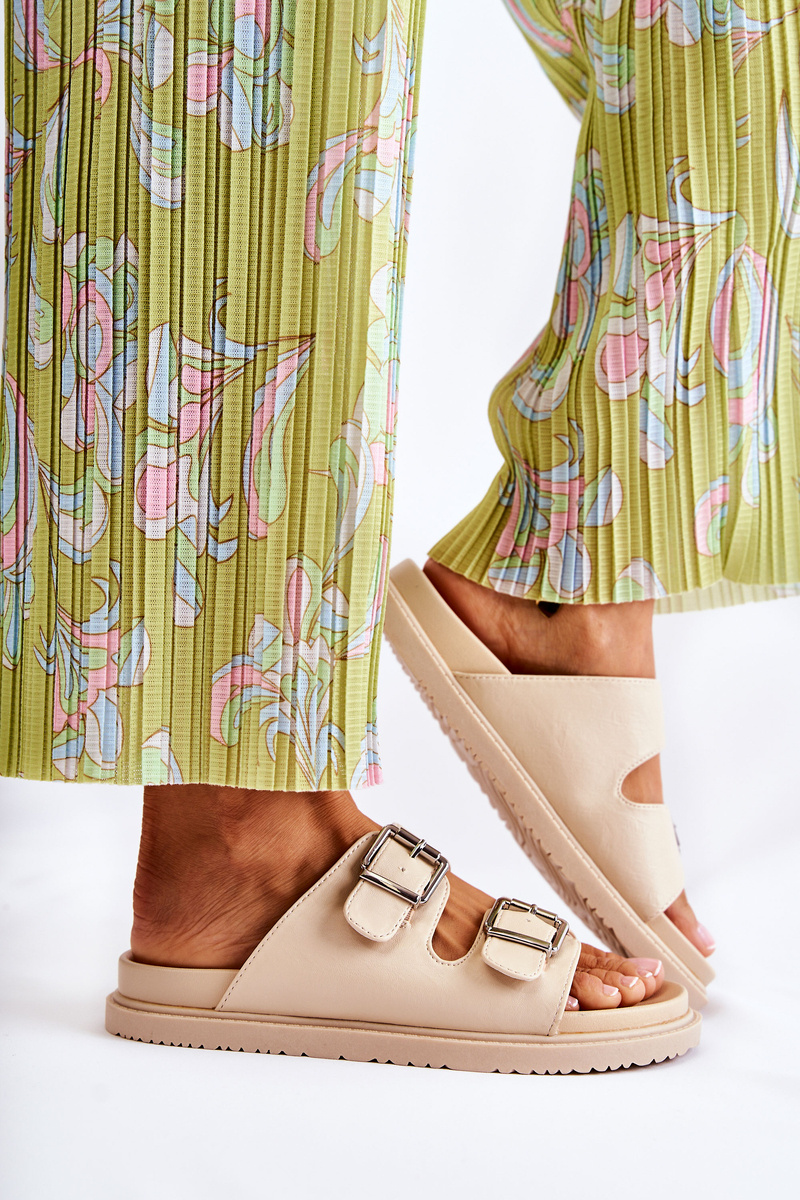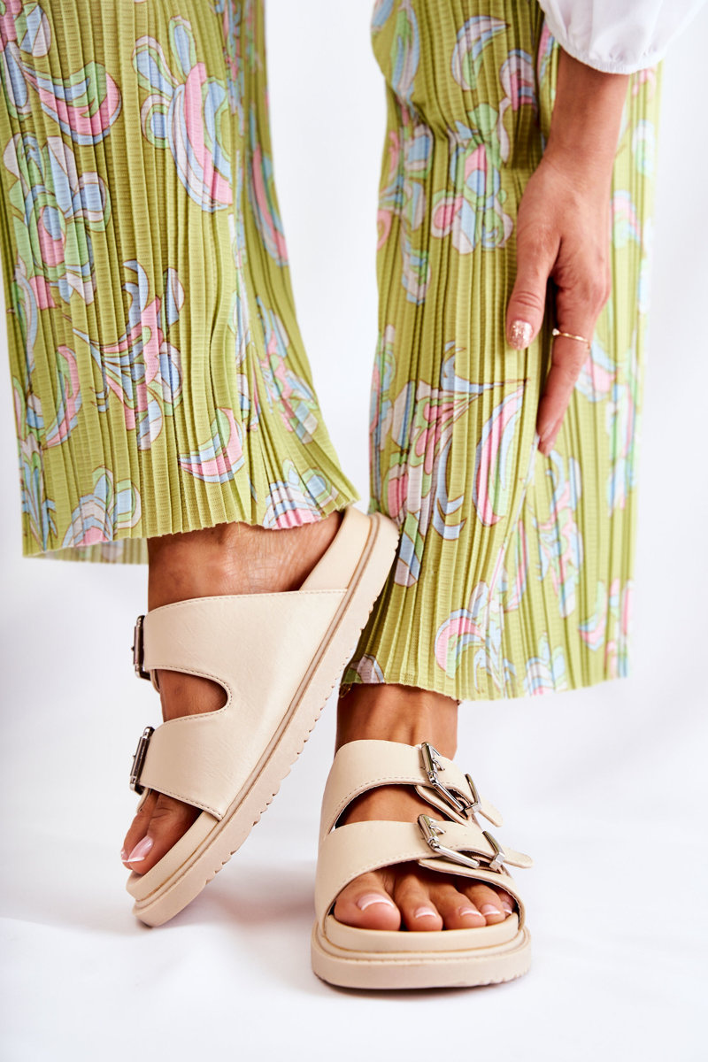 Klasické klapky na sklz -off vyrobené z ekologickej kože. Postavené na plochú, hrubšiu podrážku. Majú dva nastaviteľné pruhy s prackou na prednej strane. Pohodlná, profilovaná gumová plastová vložka. Perfektné každý deň! Model s otvoreným, zaokrúhleným špičkou. Skvelá letná obuv! Pri výbere veľkosti navrhnite tabuľku veľkosti. /p>