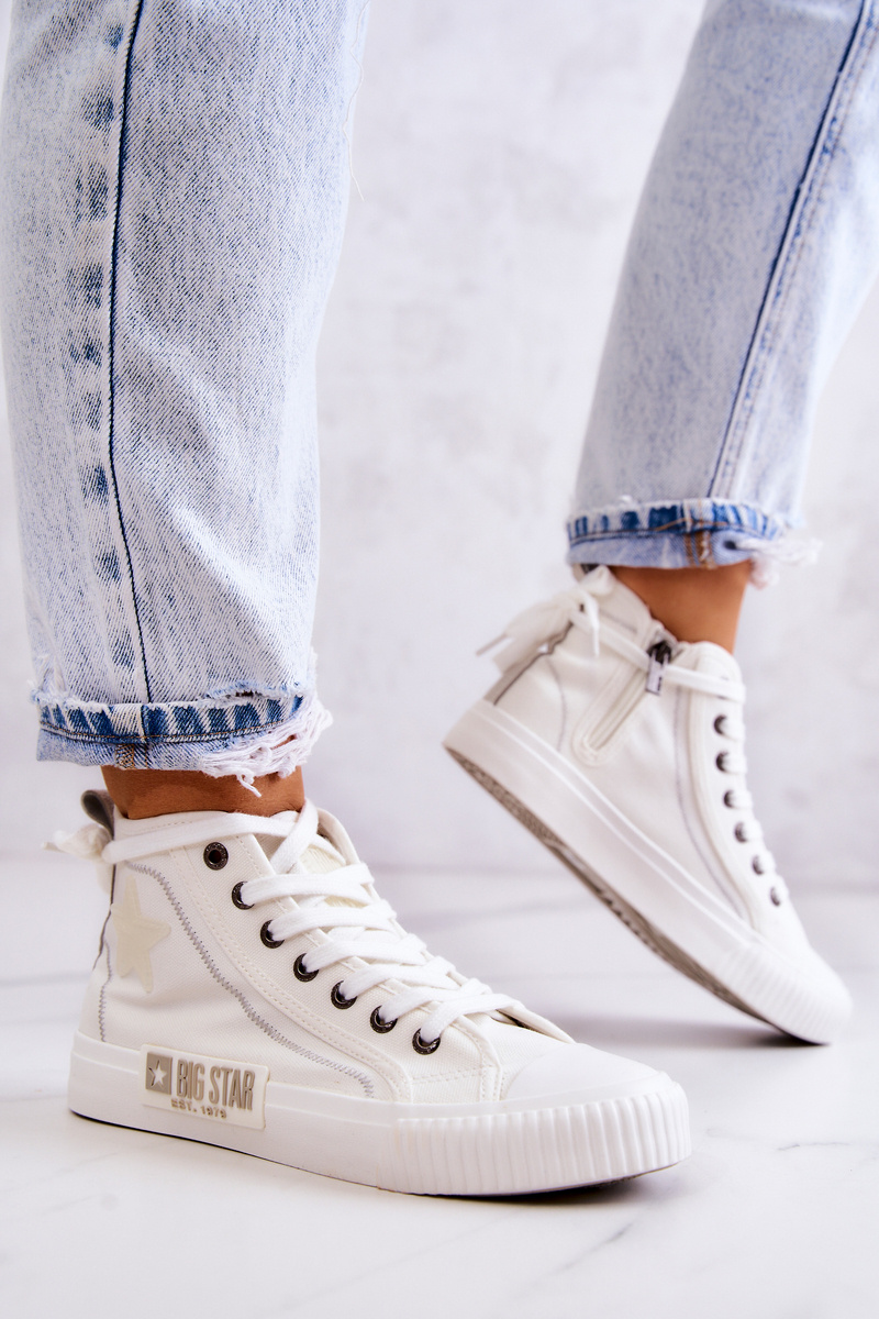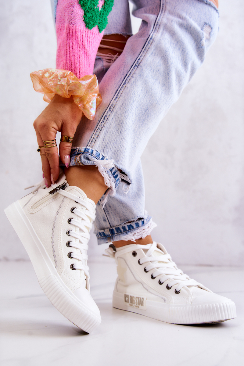 Značka Big Star je známa svojimi kultovými teniskami v rôznych štýloch a farebných variantoch. Tieto vysoké tenisky sú ďalším návrhom na nadchádzajúcu jarnú a letnú sezónu. Obuv bola vyrobená z vysoko kvalitného textilného materiálu. Vložka z mäkkého materiálu umožní pohodlné použitie topánok. Tenisky majú puto a posúvač na boku hornej časti, aby sa uľahčila inštalácia obuvi. Orstvy odolné voči oderu a podrážka z netušia je vyrobená z gumového plastu. Hviezda a logo spoločnosti boli umiestnené na vonkajšej strane zvršku. Ideálne na každodenné použitie! Pri výbere veľkosti, navrhnite tabuľku veľkosti.