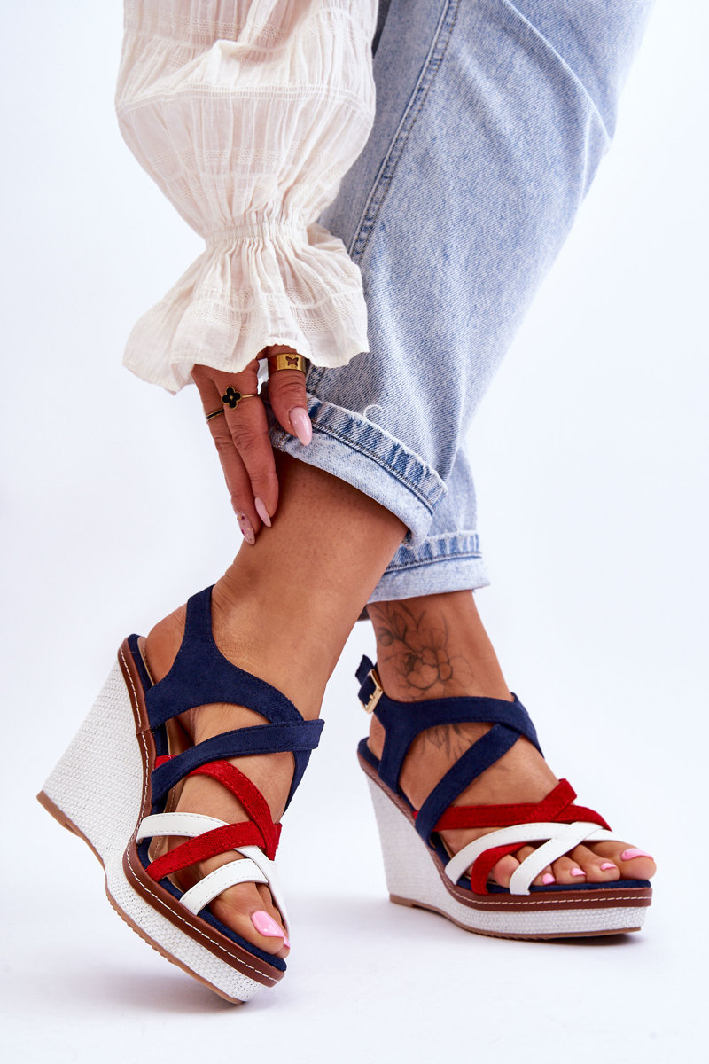 Klinové sandále s pásovými popruhmi Navy Ellen