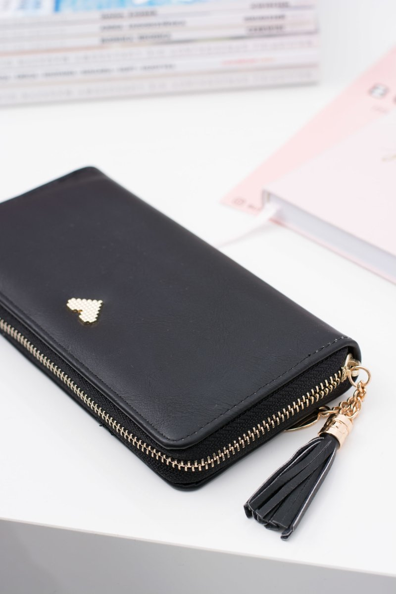 Predstavujeme krásnu peňaženku pre elegantné dámy. Tento produkt sa vyznačuje jedinečným štýlom modelovaným na módnych trendoch. Peňaženky vyrobené iba pomocou materiálov s najvyššou triedou. Opatrný a krásny povrch peňaženky odráža úžasnú pozornosť detailom a módnej chuti. Vo vnútri nájdete 3 priehradky, ktoré sú pripevnené zámkom zdobeným prsteňom kľúčom so zlatým srdcom a strapcami. Jedna z vreciek je pripevnená hradom, ktorý je vynikajúci na ukladanie mincí, navyše existuje 8 priehradiek pre karty a dva pre väčšie dokumenty. K dispozícii v niekoľkých farbách. Nečakajte a urobte si toto úžasné portfólio zdobené pompom a napodobňovaním zámku na okrajoch.