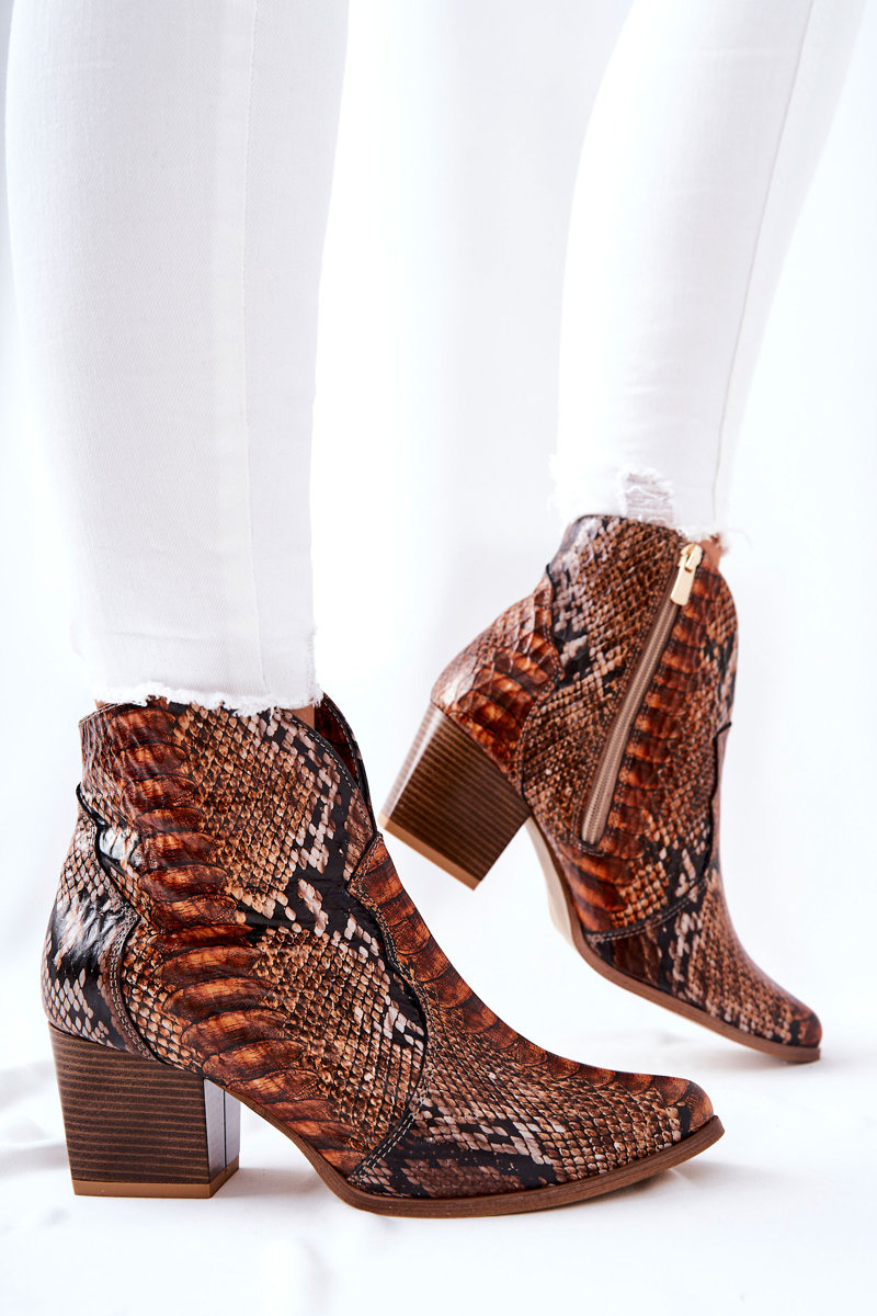 Kovbojské topánky Lewski hnedý vzor hadov EV28