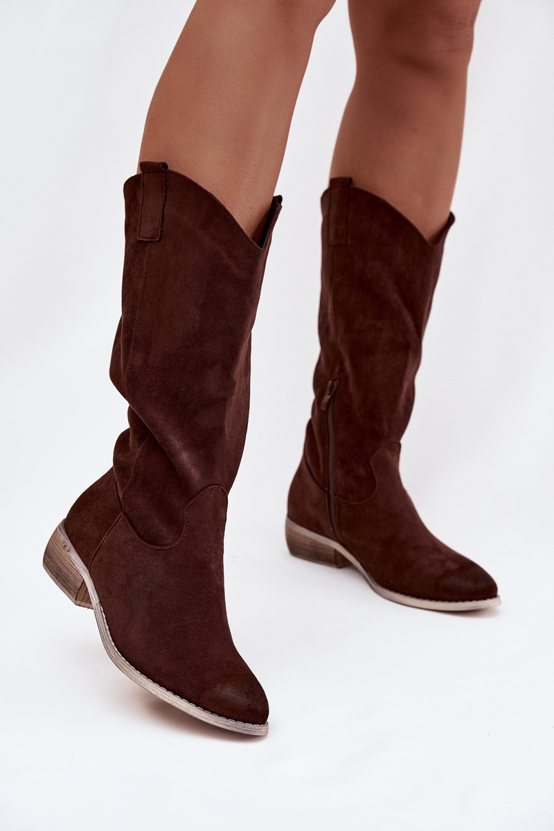 Kozaky Kovbojky S Nízkym Opätkom Z Eko Semišu Čokoládové Cherrie