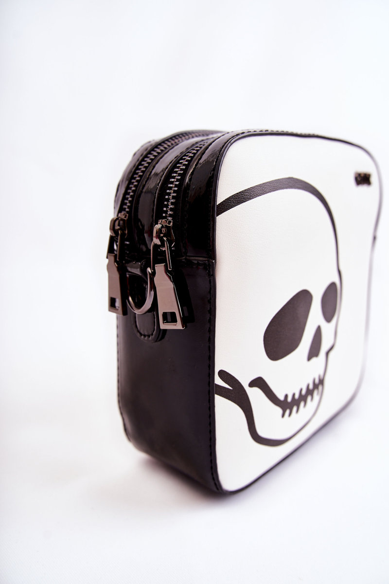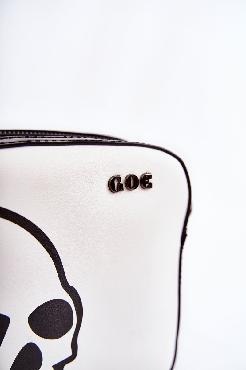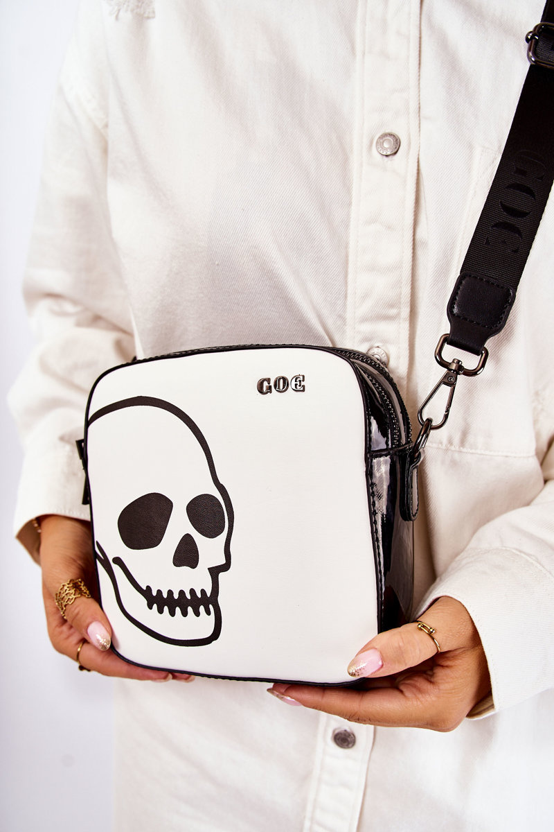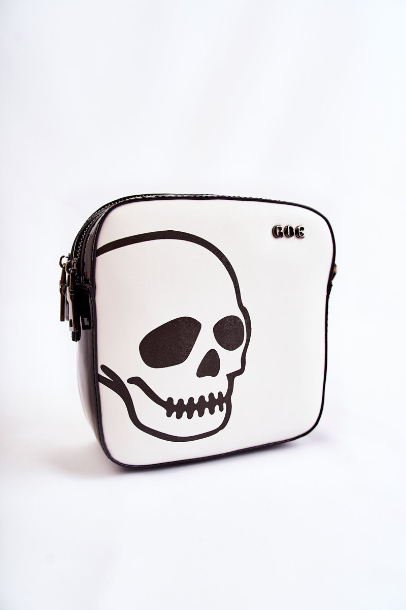 Módna kabelka Goe by mala byť vo vašom šatníku! Bola vyrobená z vysoko kvalitnej ekologickej kože. Na prednej strane je logo Goe a dekoratívny motív s lebkou a kvetmi. Vrecko majú dve komory zatvorené zipsom. V jednom z nich je otvorené vrecko, zatiaľ čo v druhom vrecko je zatvorená s posúvačom. Podšívka vyrobená z látky s dekoratívnym vzorom. Okrem toho je na zadnej strane vaku zatvorená vrecko s posúvačom. Tento messenger má jeden nastaviteľný, odnímateľný remienok.