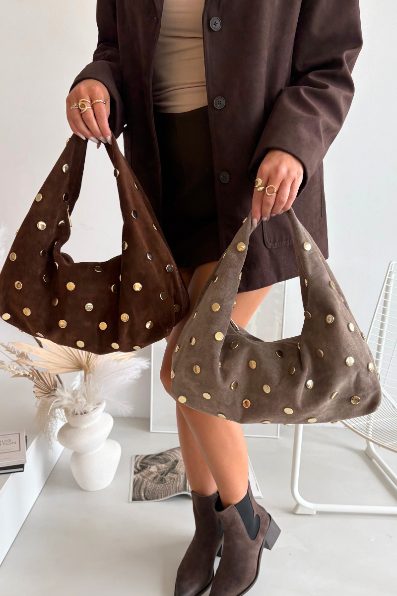 Kožená semišová taška s ozdobou tmavobéžová Narisse