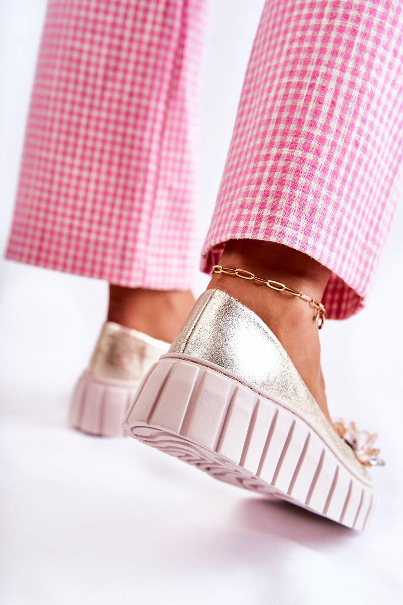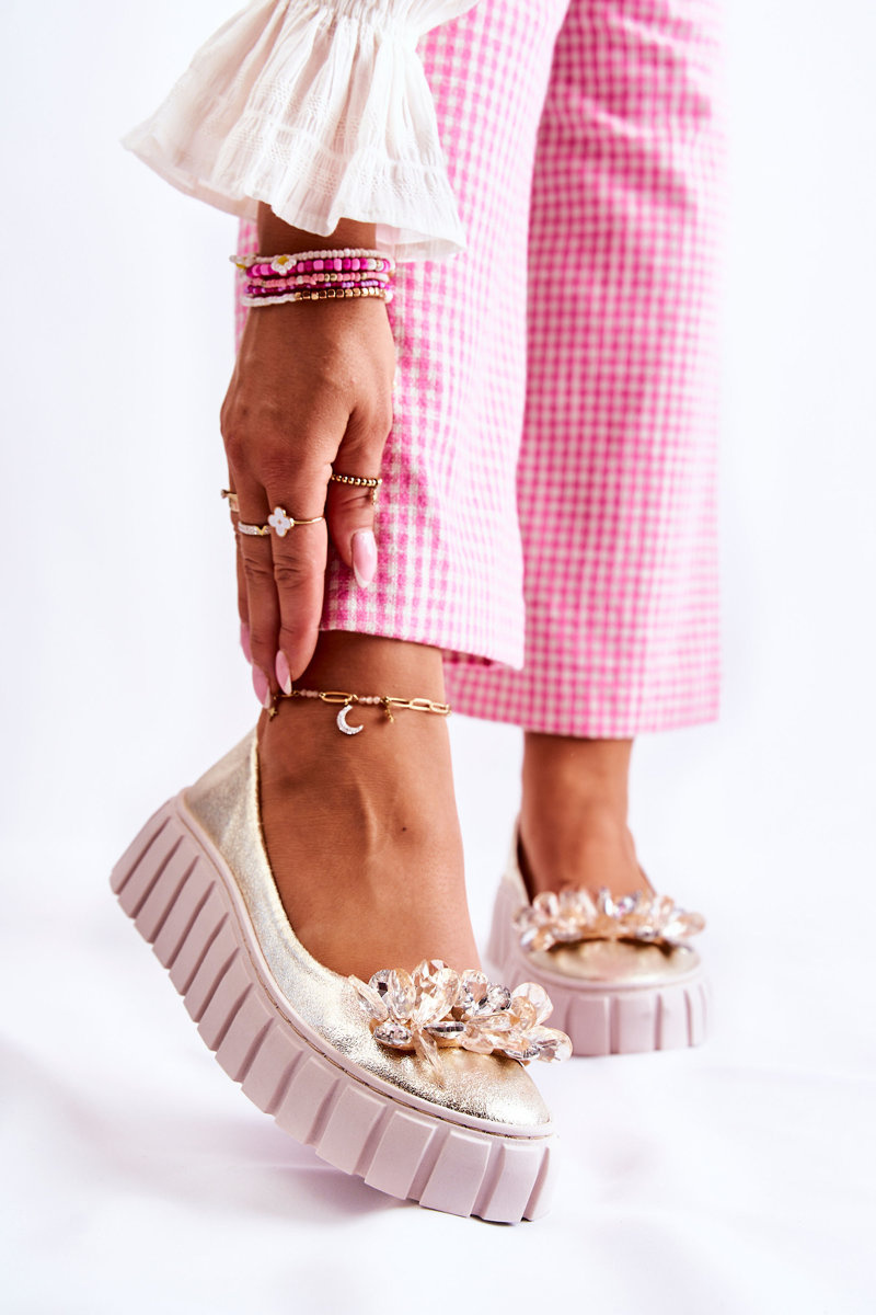 Kožené baleríny na plošine s dekoráciou Zlatej ladiet