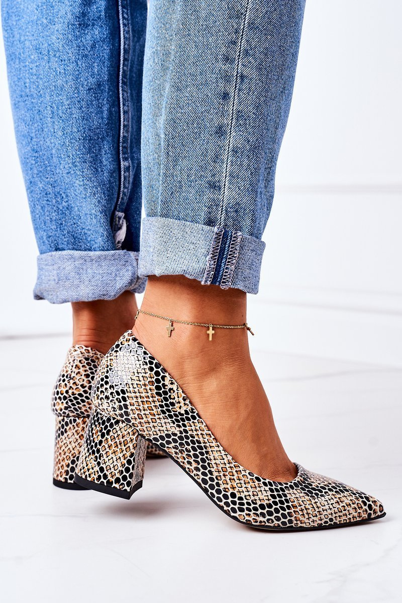 Kožené čerpadlá so živočíšnym vzorom lewski topánky 2801 čierna a béžová