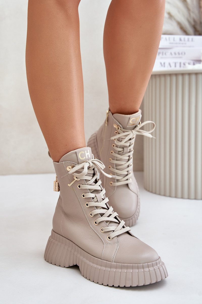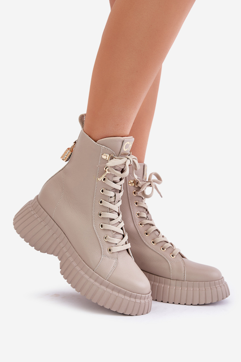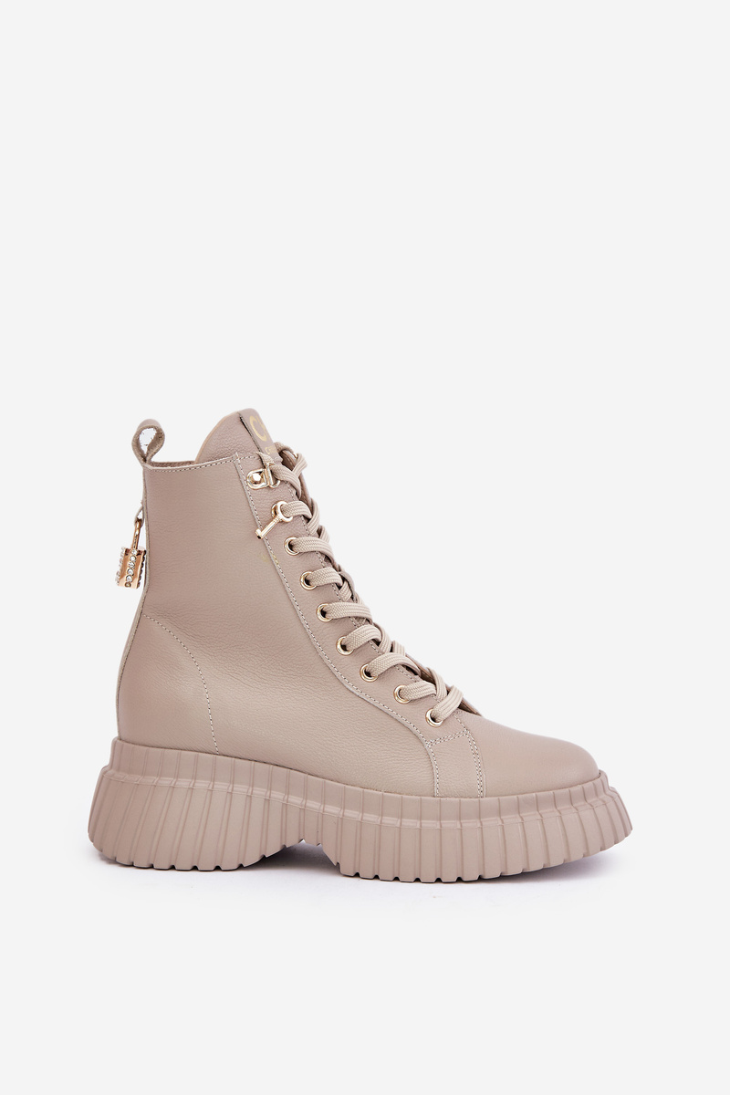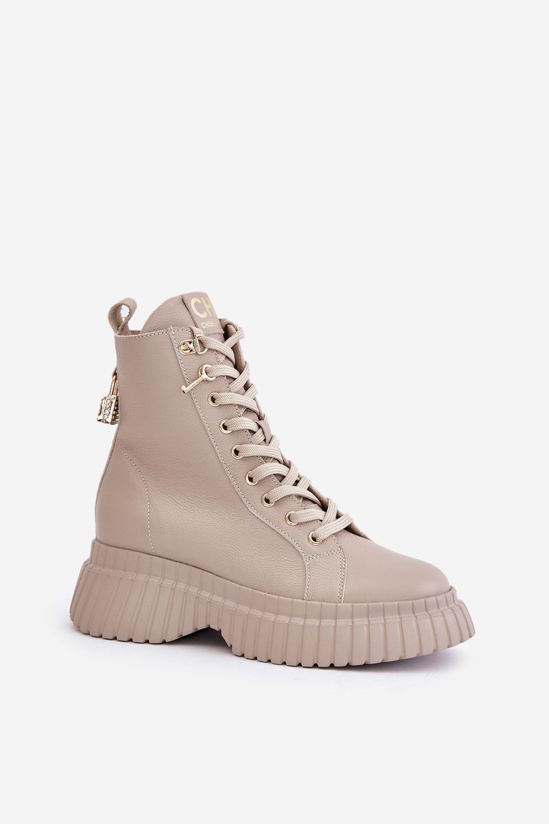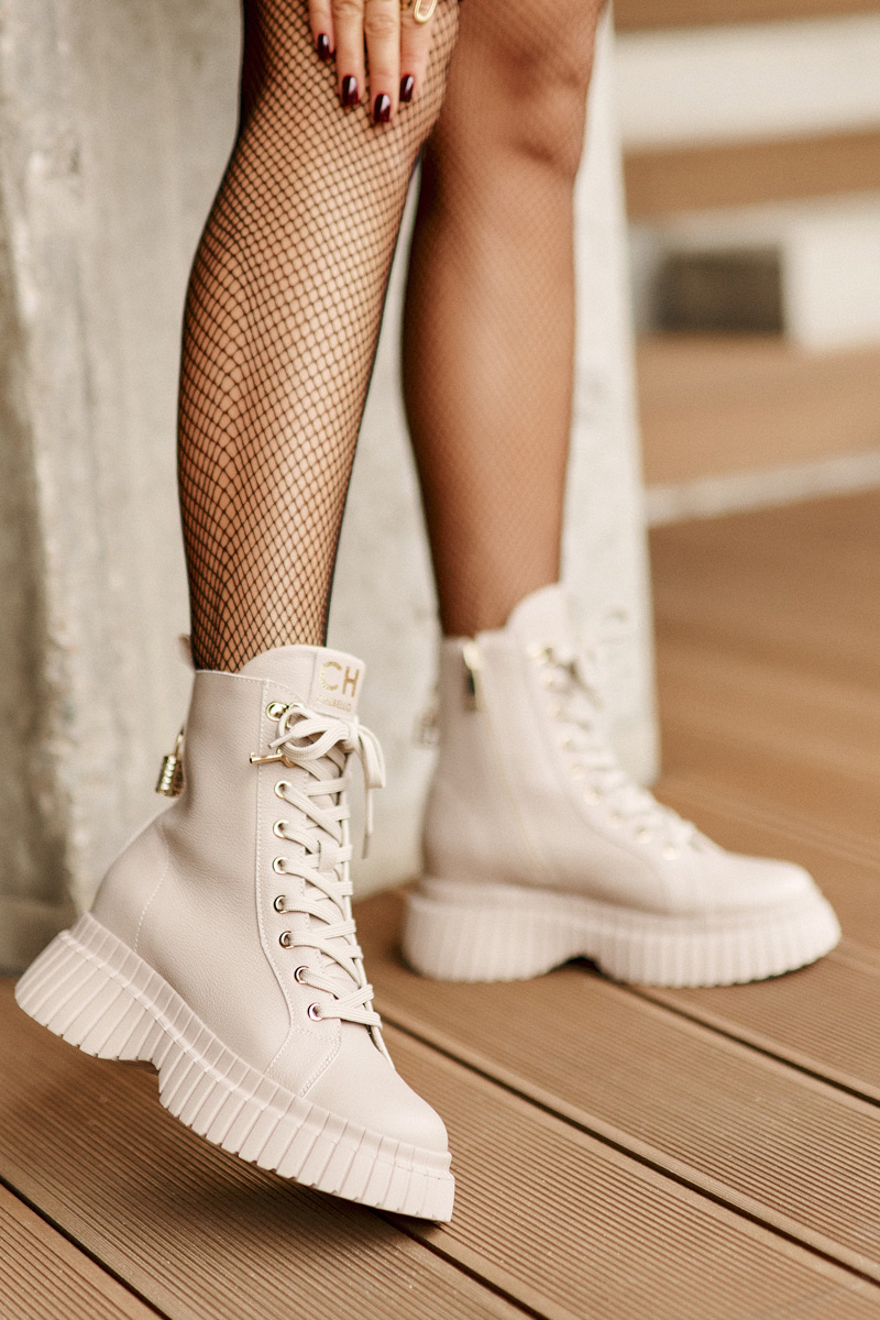 Kožené Čižmy Na Platforme Na Zips S Dekoratívnym Zámkom CheBello 4517 Béžové