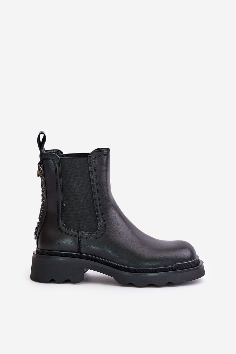 Kožené Čižmy S Dekoratívnym Reťazcom Zateplené D&A JC42-86 Čierne