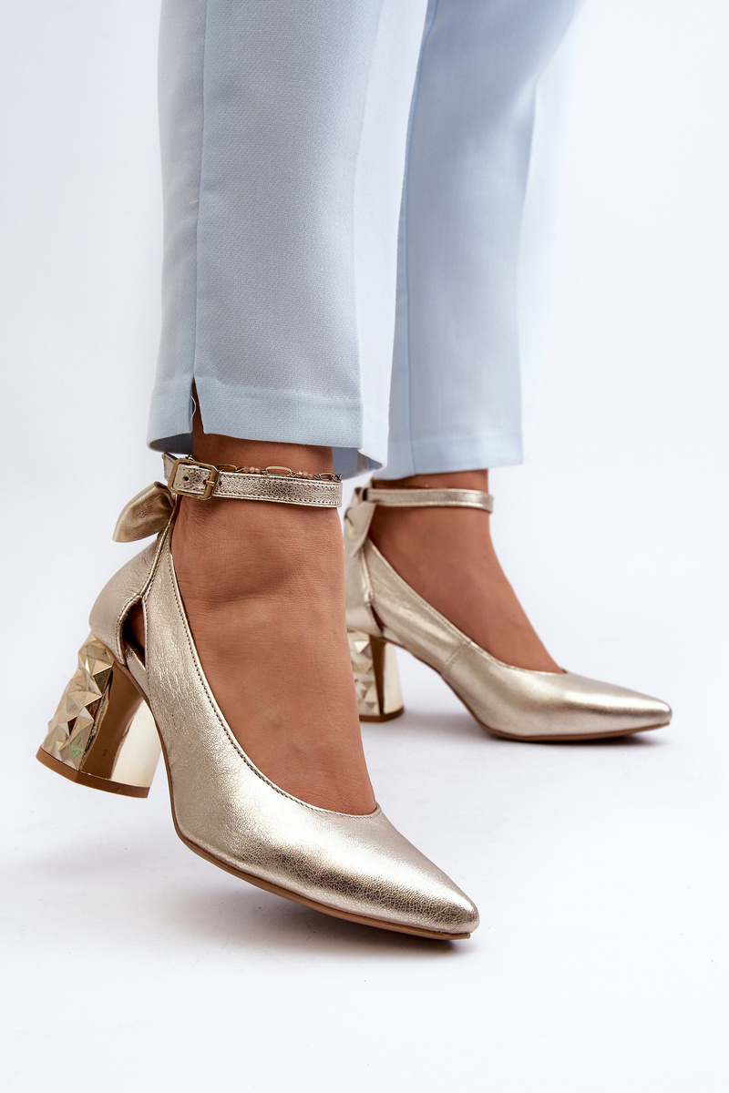 Kožené členkové topánky S Mašličkou Maciejka 05059-25 Zlaté