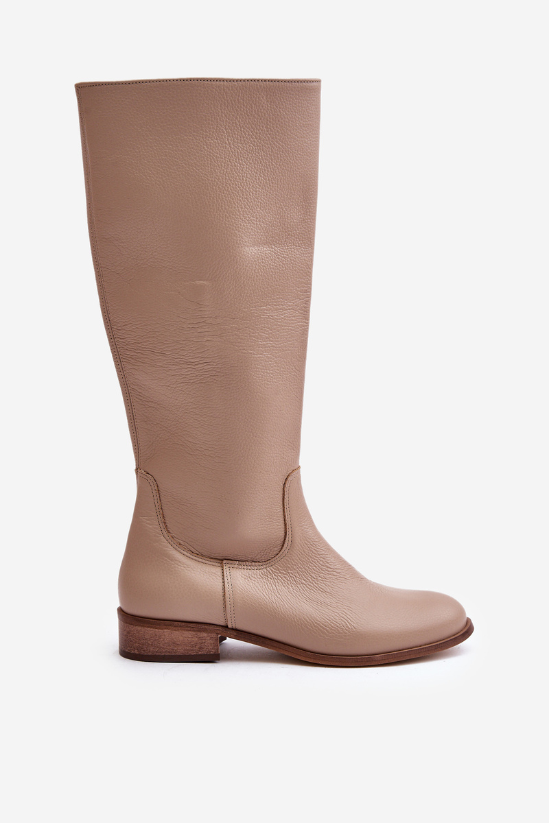 Kožené dámske čižmy do polovice lýtok na zips Lewski 3616 Béžové